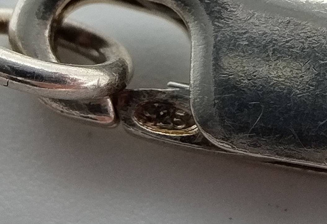 Sterling und 925 für Silber 1. Güteklasse gestempelt.