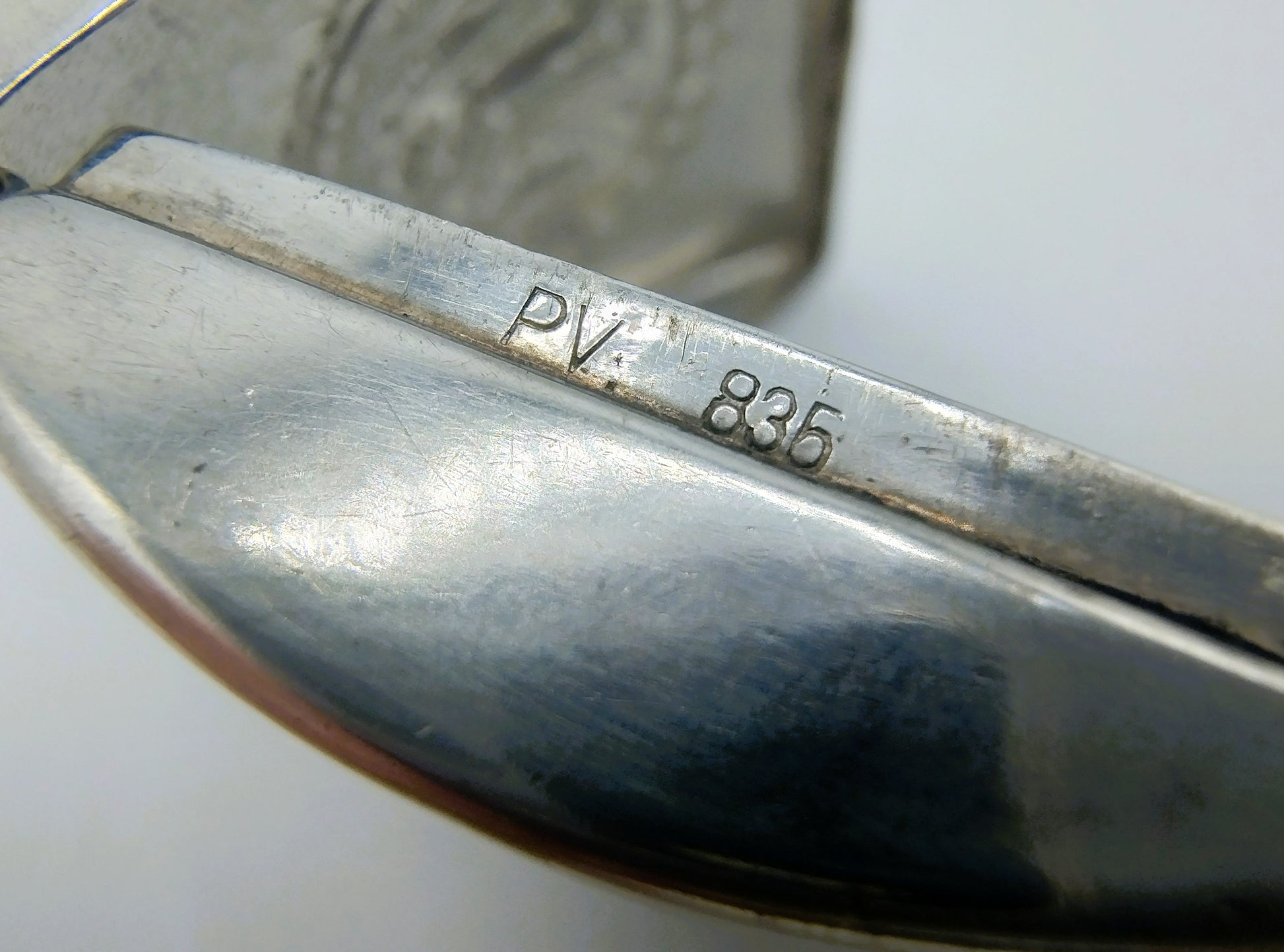 Die Box ist mit 835 für Silber 2. Grades und der Meistermarke PV gekennzeichnet. Auch mit Z11 im Rahmen einer niederländischen Nachprüfung überprüft.