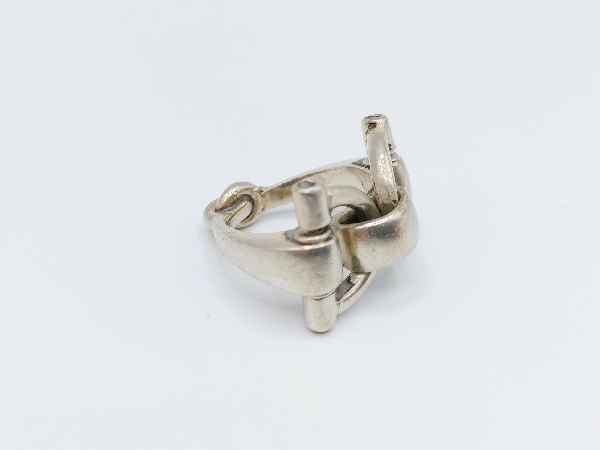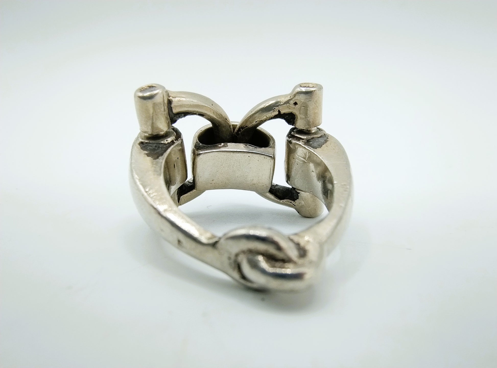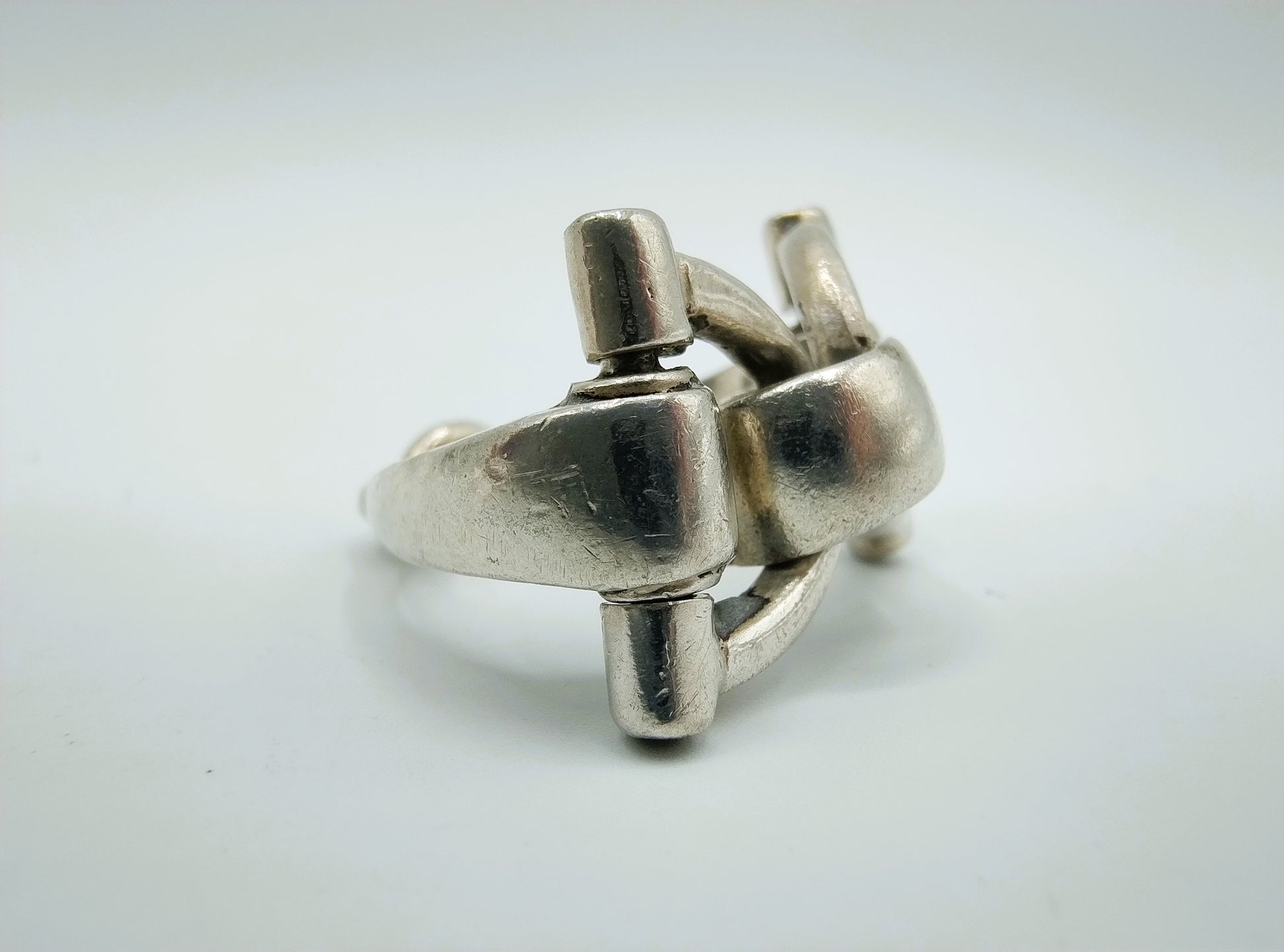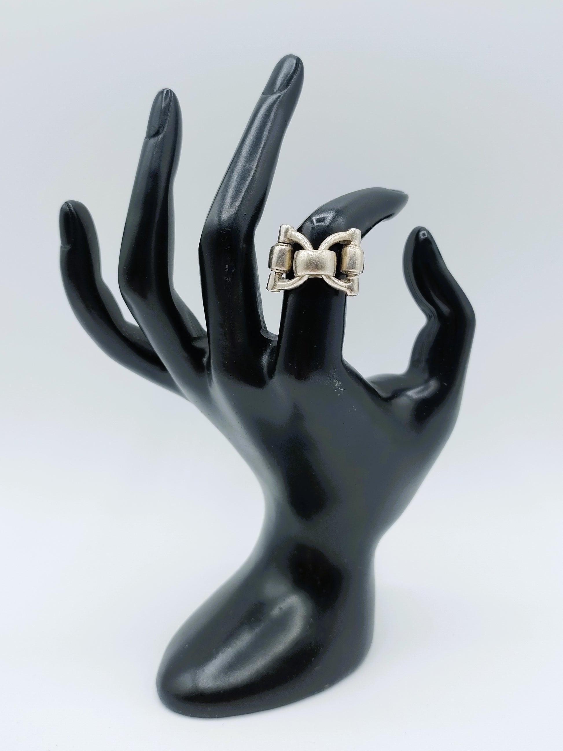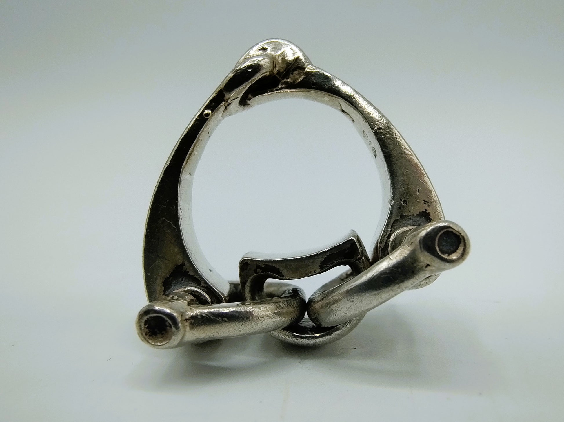 Silberring in Form eines Pferdegebisses. Der Ring hat bewegliche Teile.