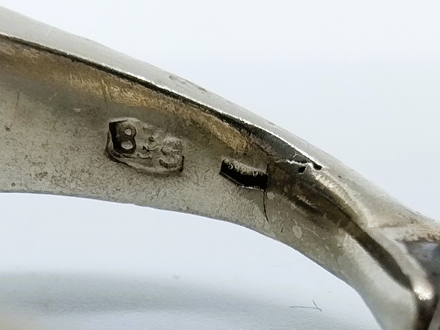Gestempelt mit 835 für Silber 2. Güteklasse.