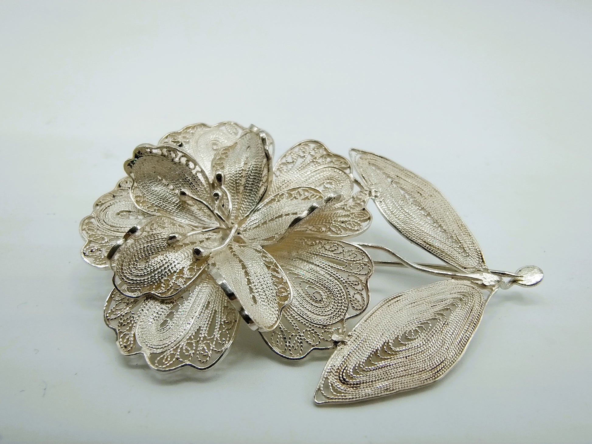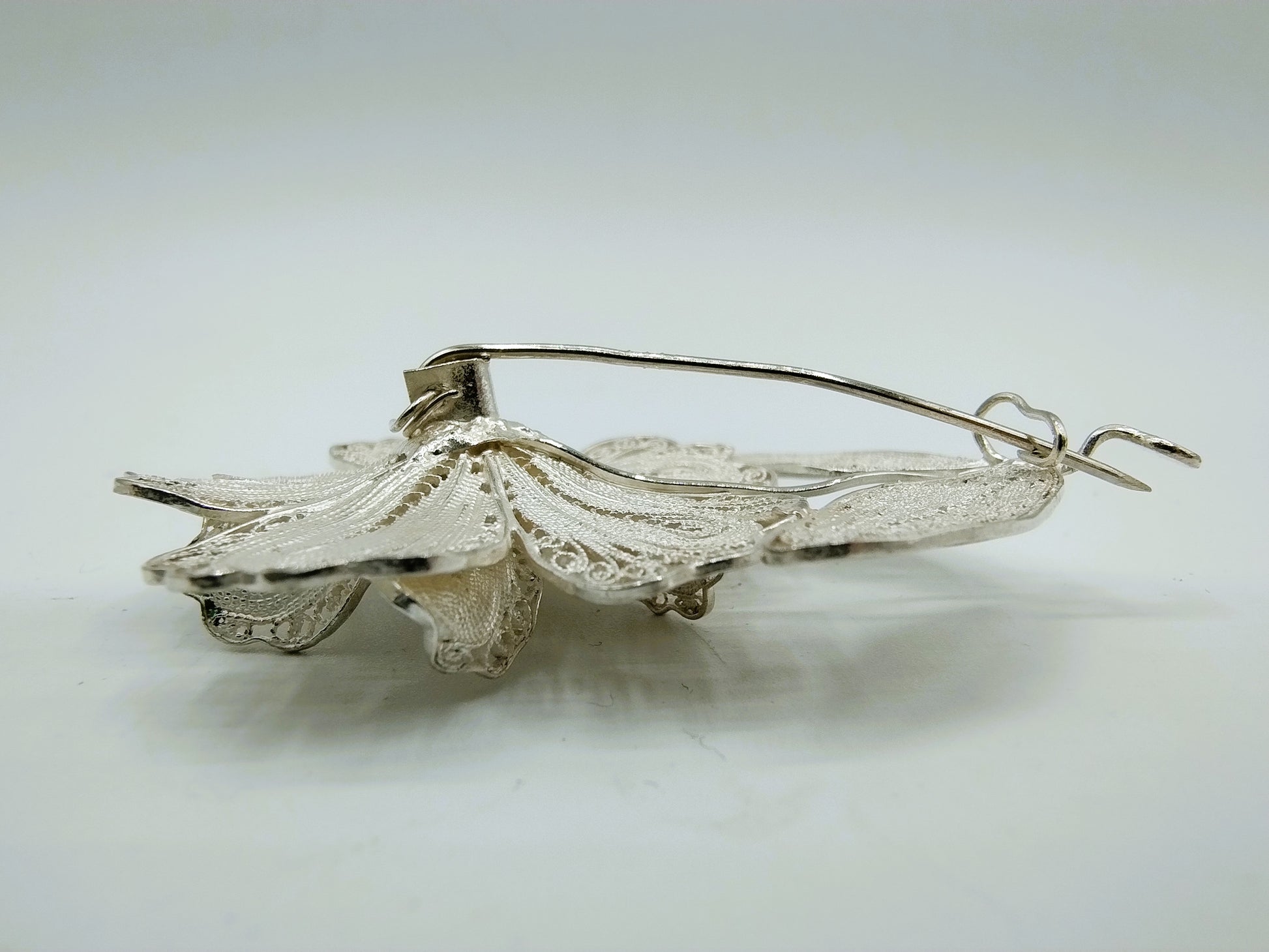 Filigrane Silberbrosche. Sehr fein detailliert.