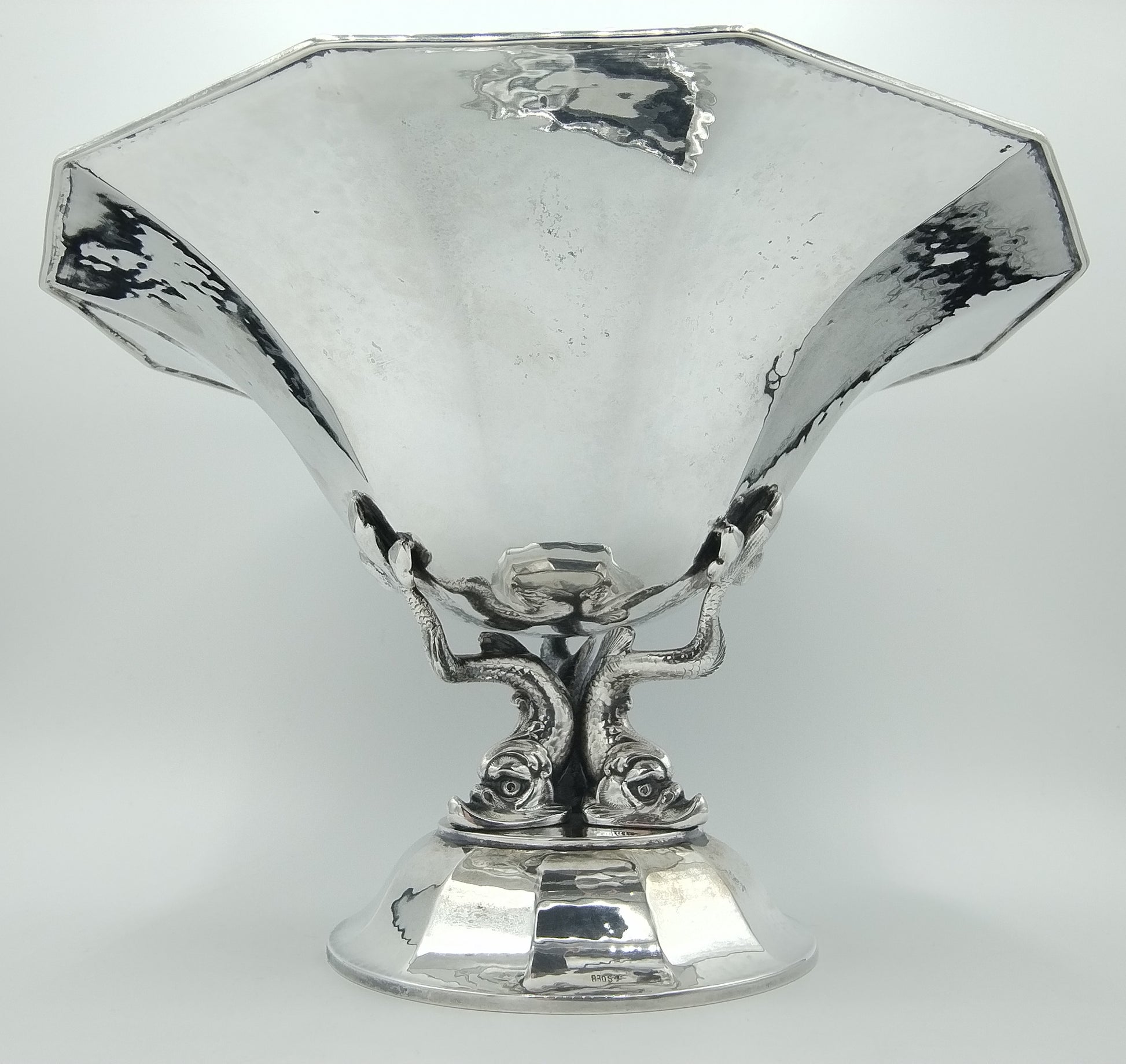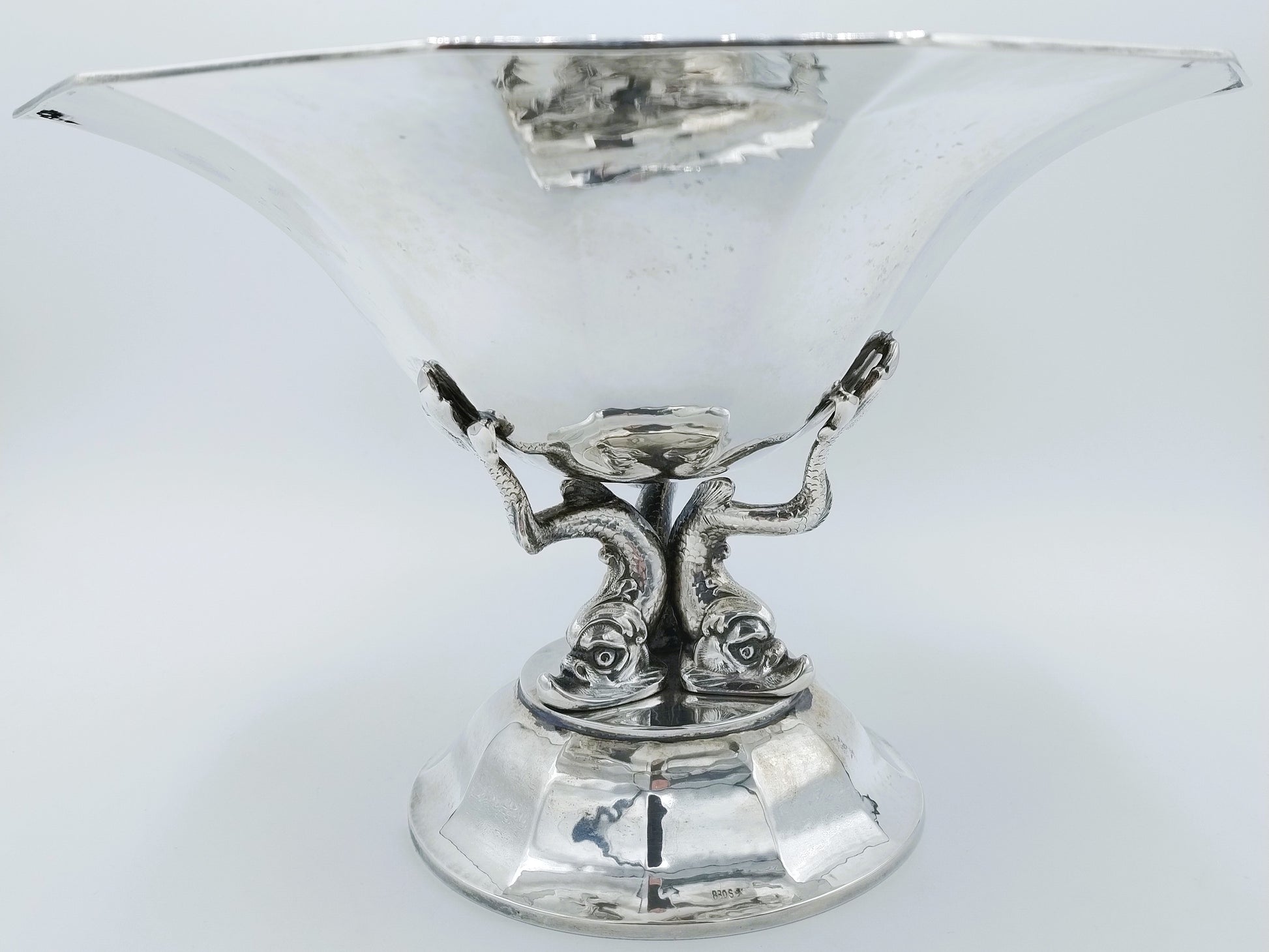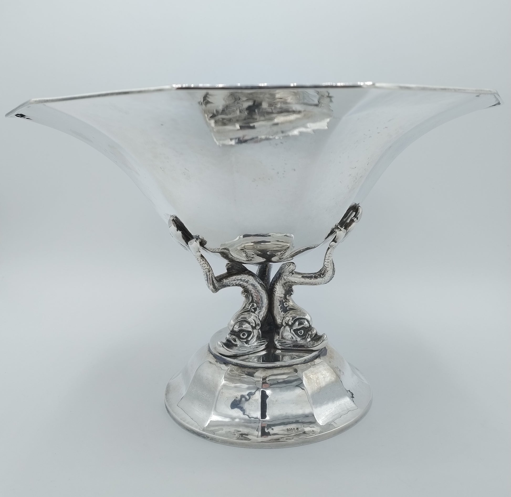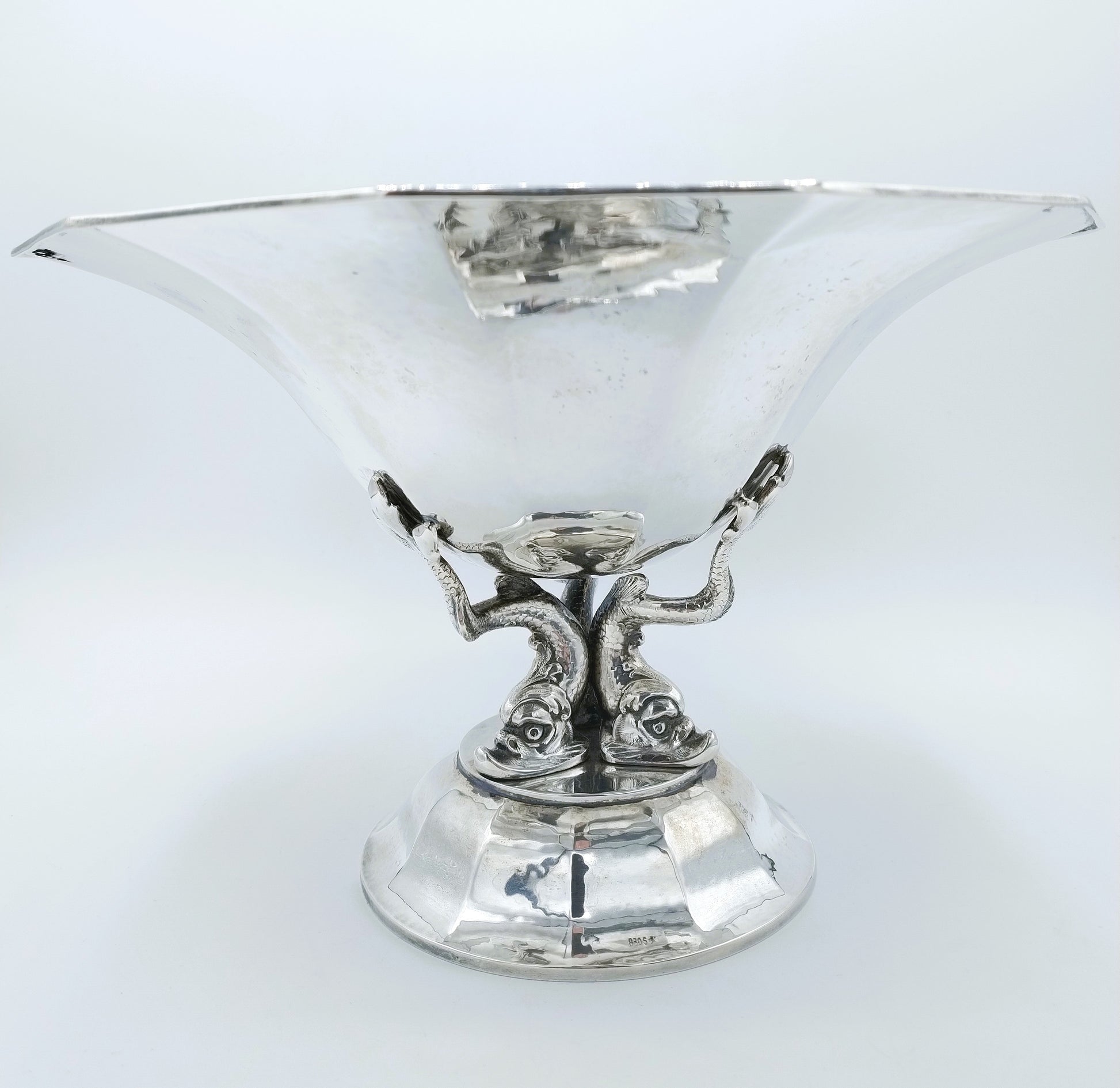 Die Obstschale wird von 3 Fischen getragen und ist einem antiken Vorbild nachempfunden.