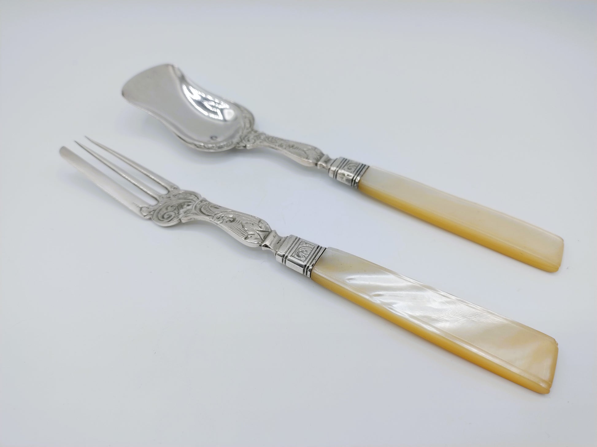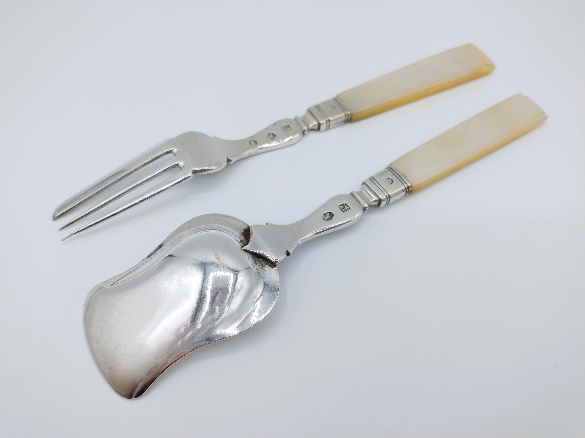 Silbernes Ingwerbesteck mit Perlmuttgriffen, JA Lintveld Sr., Amsterdam, 1850