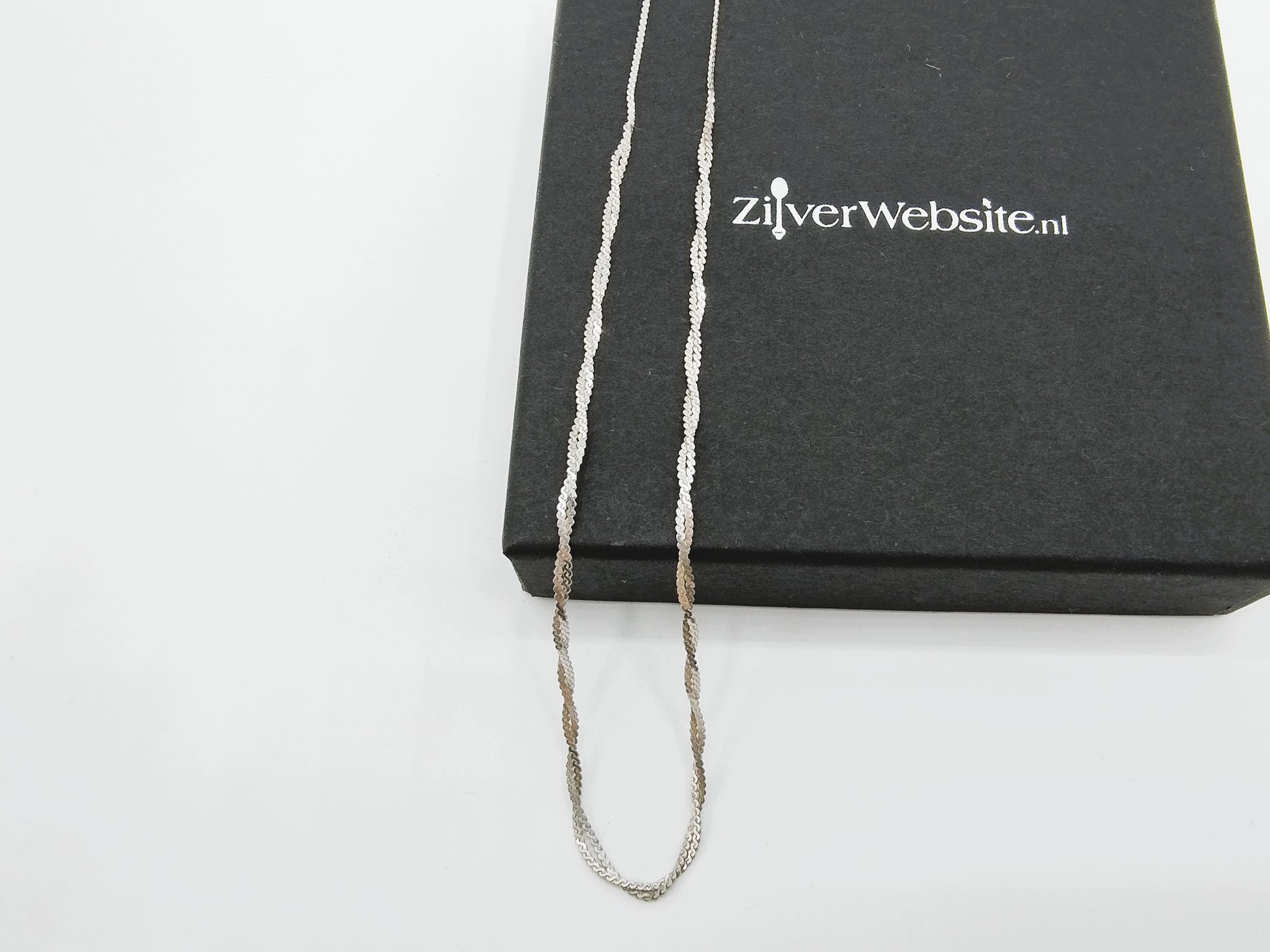 Silberne Halskette mit gedrehtem Effekt.
