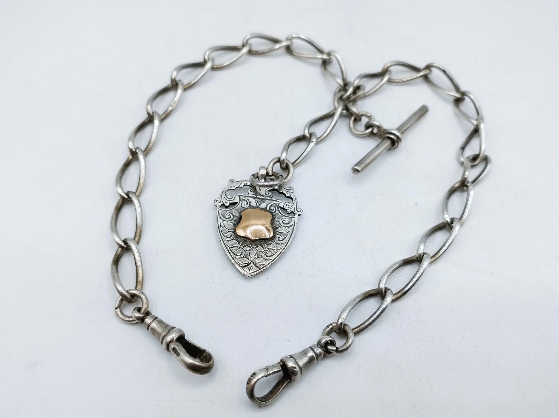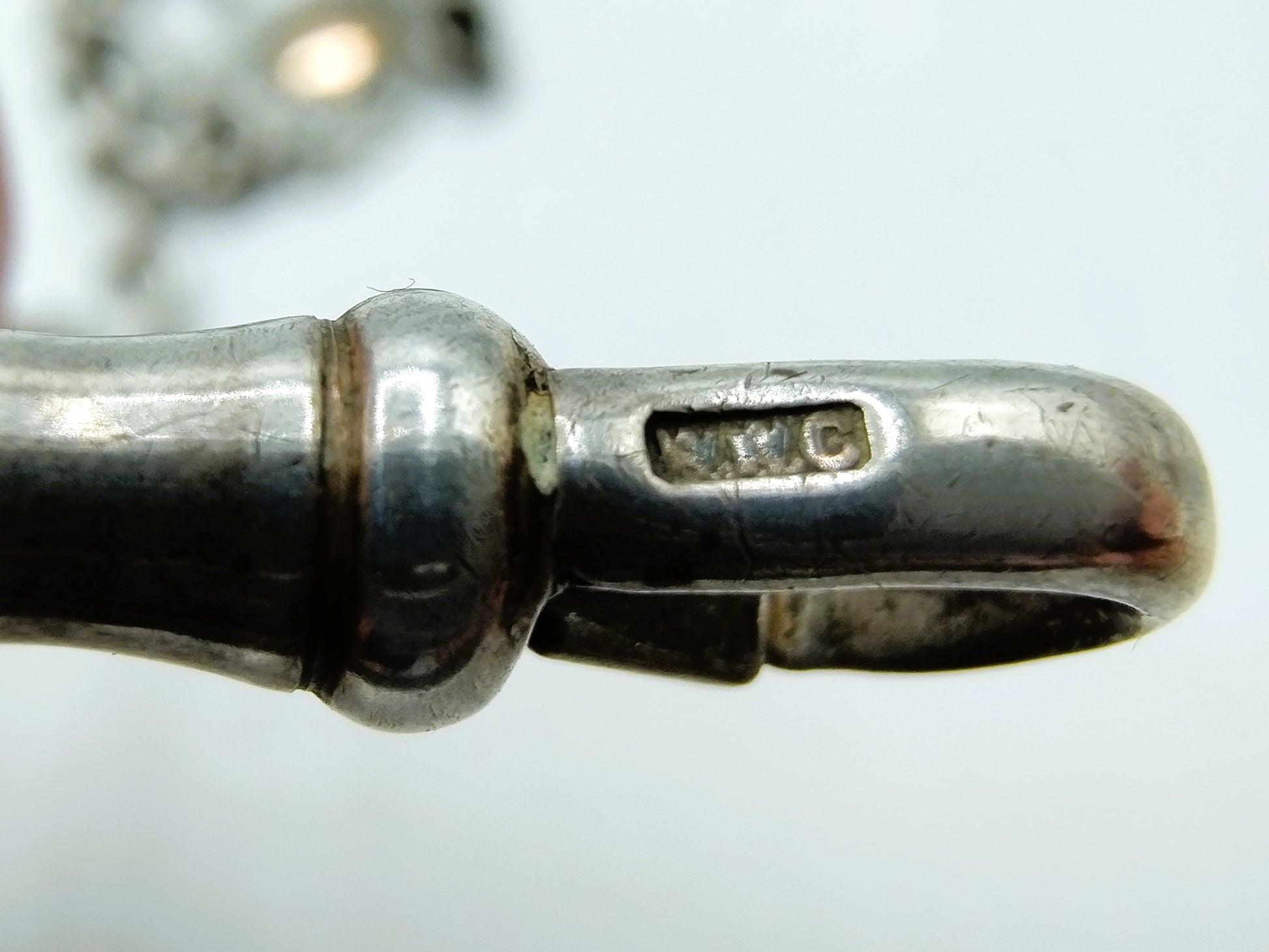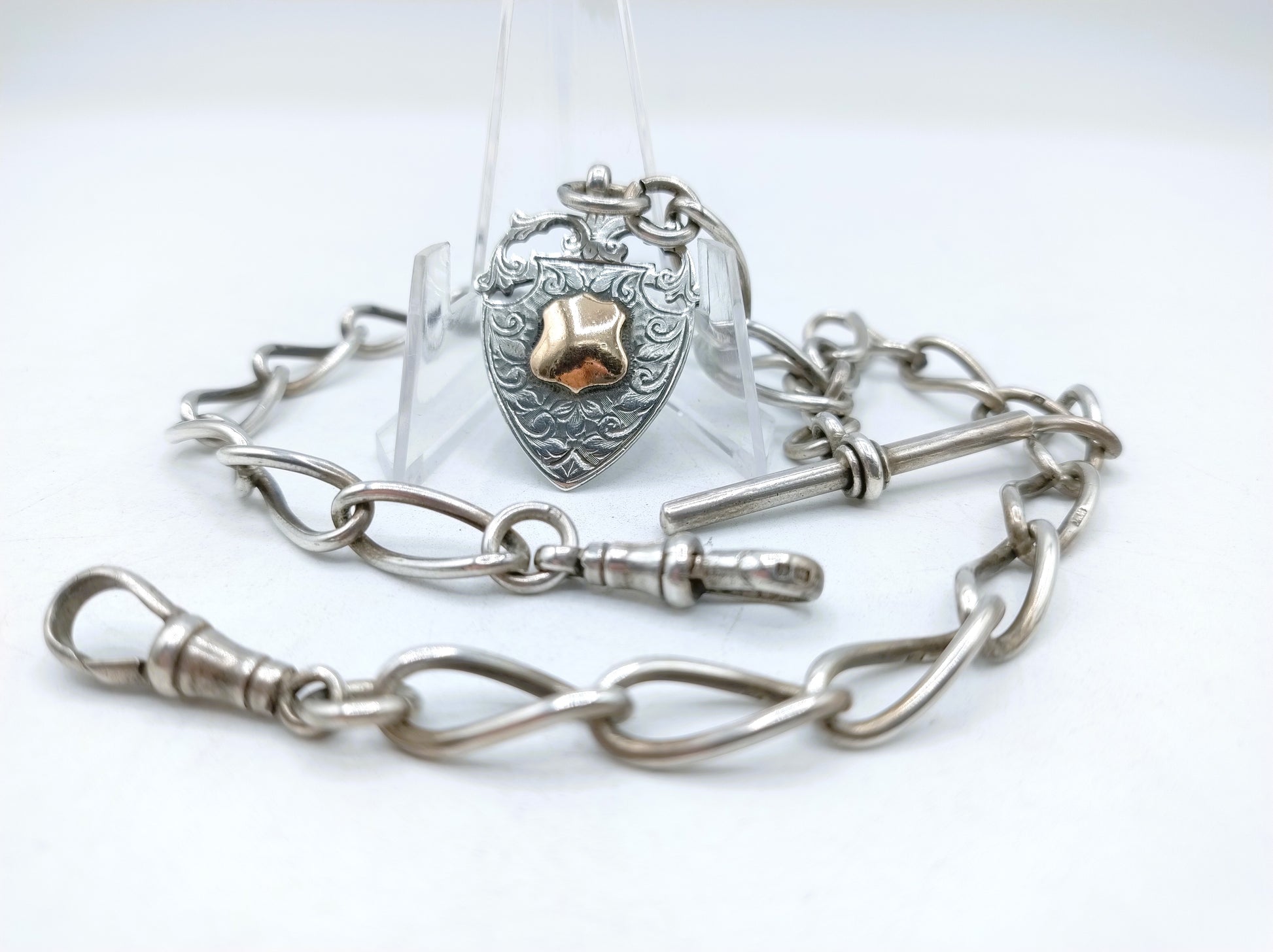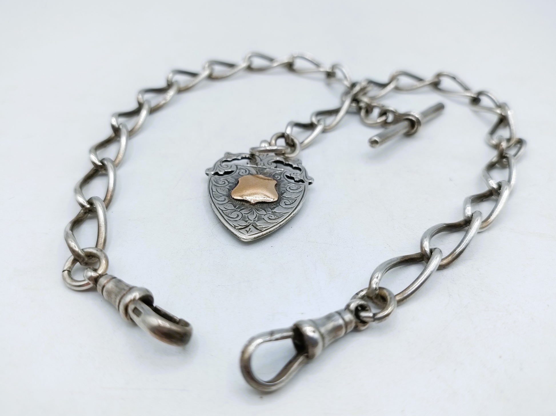 Silberne Uhrenkette mit Schild, W. Walter / Birmingham, 1918.