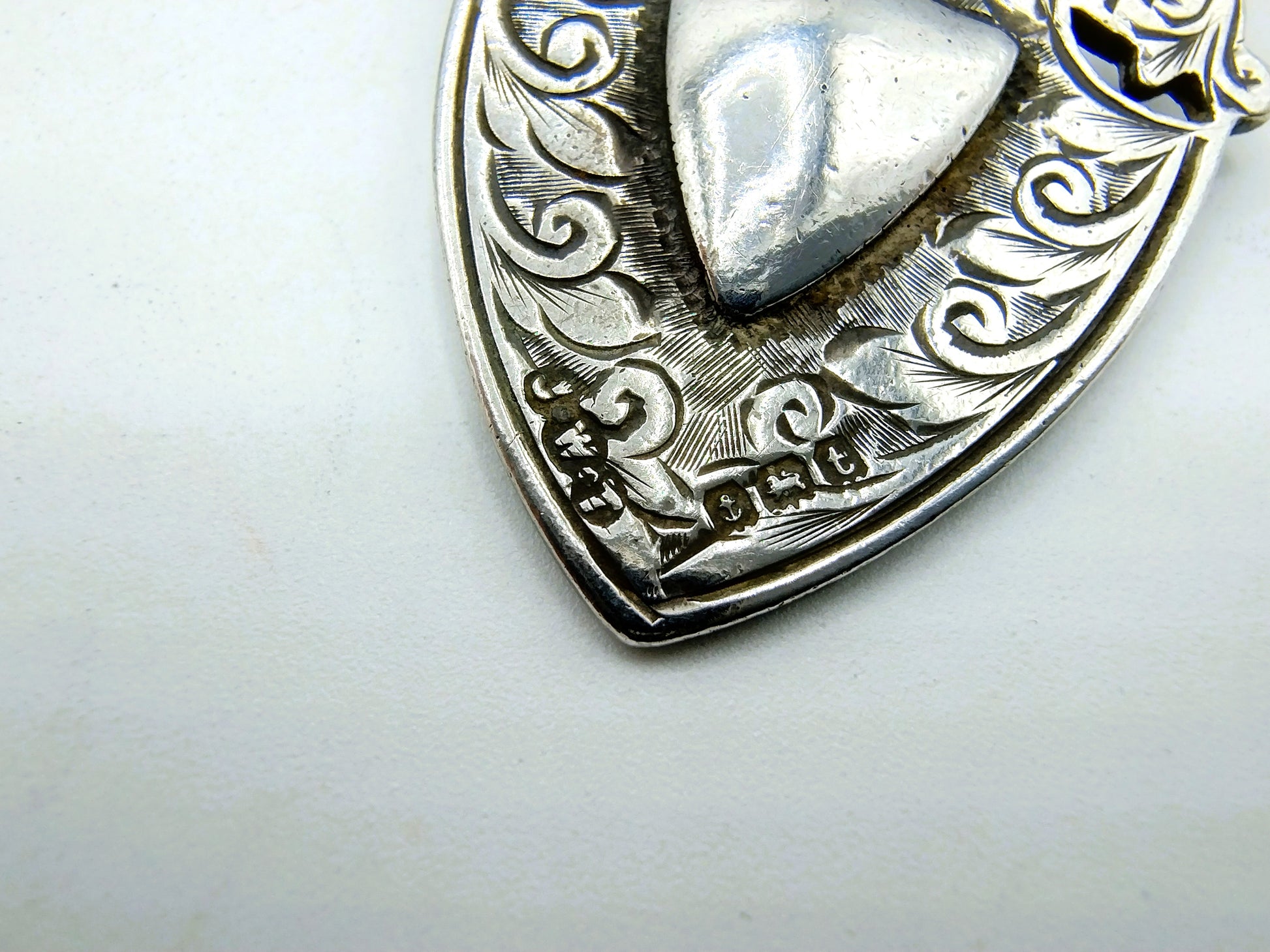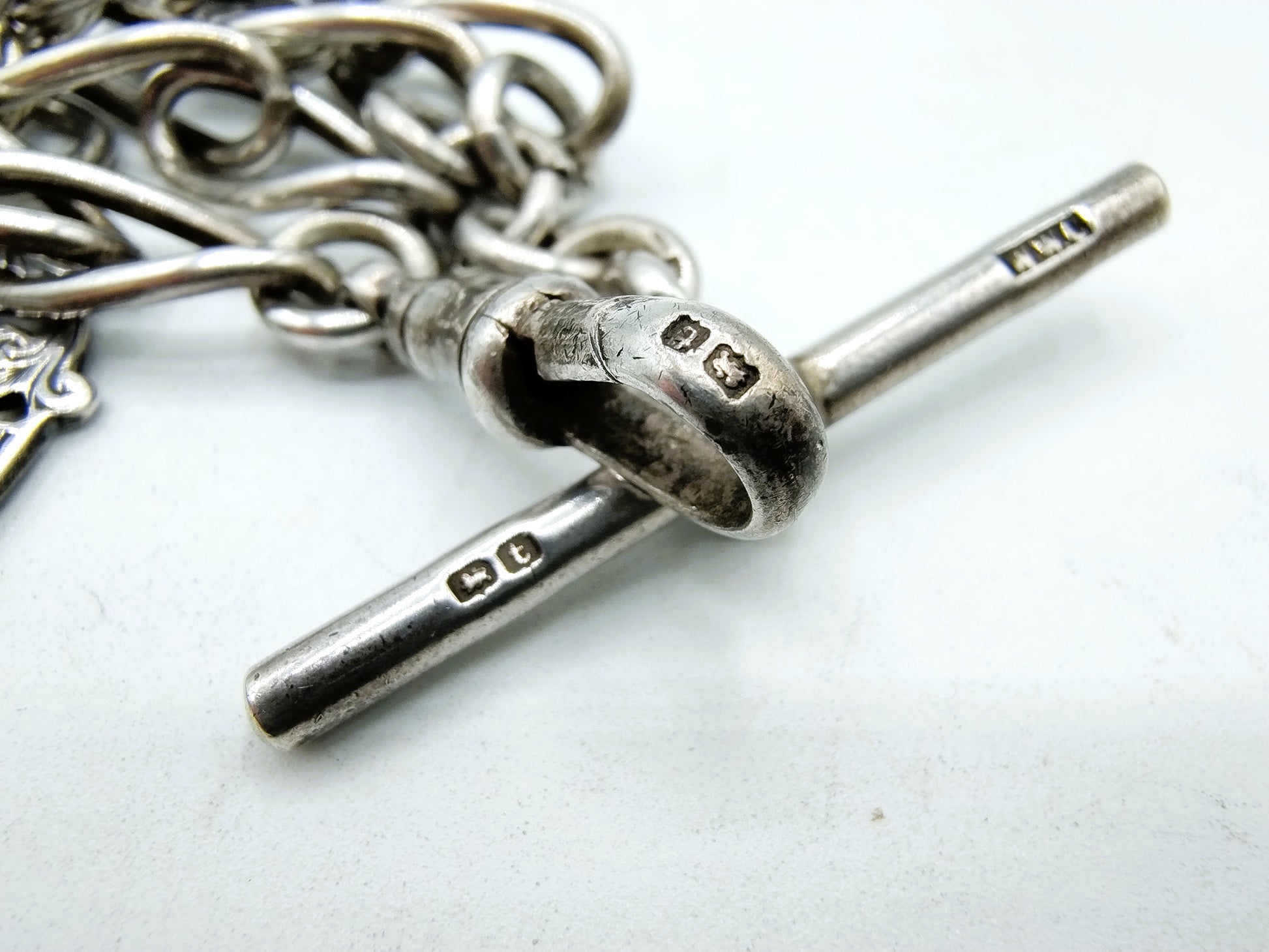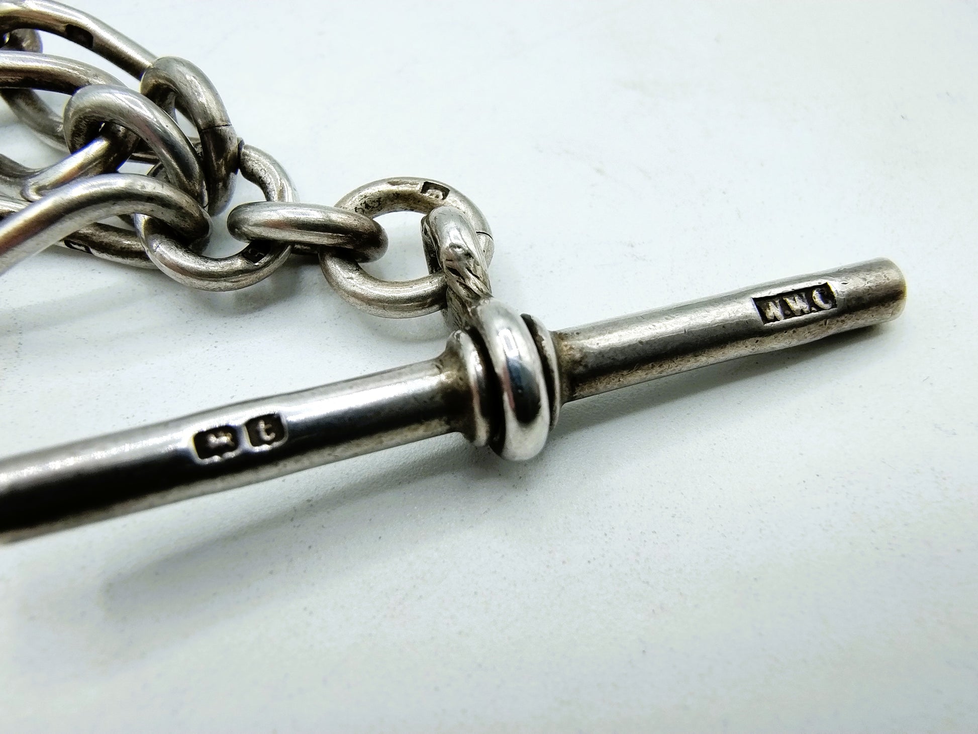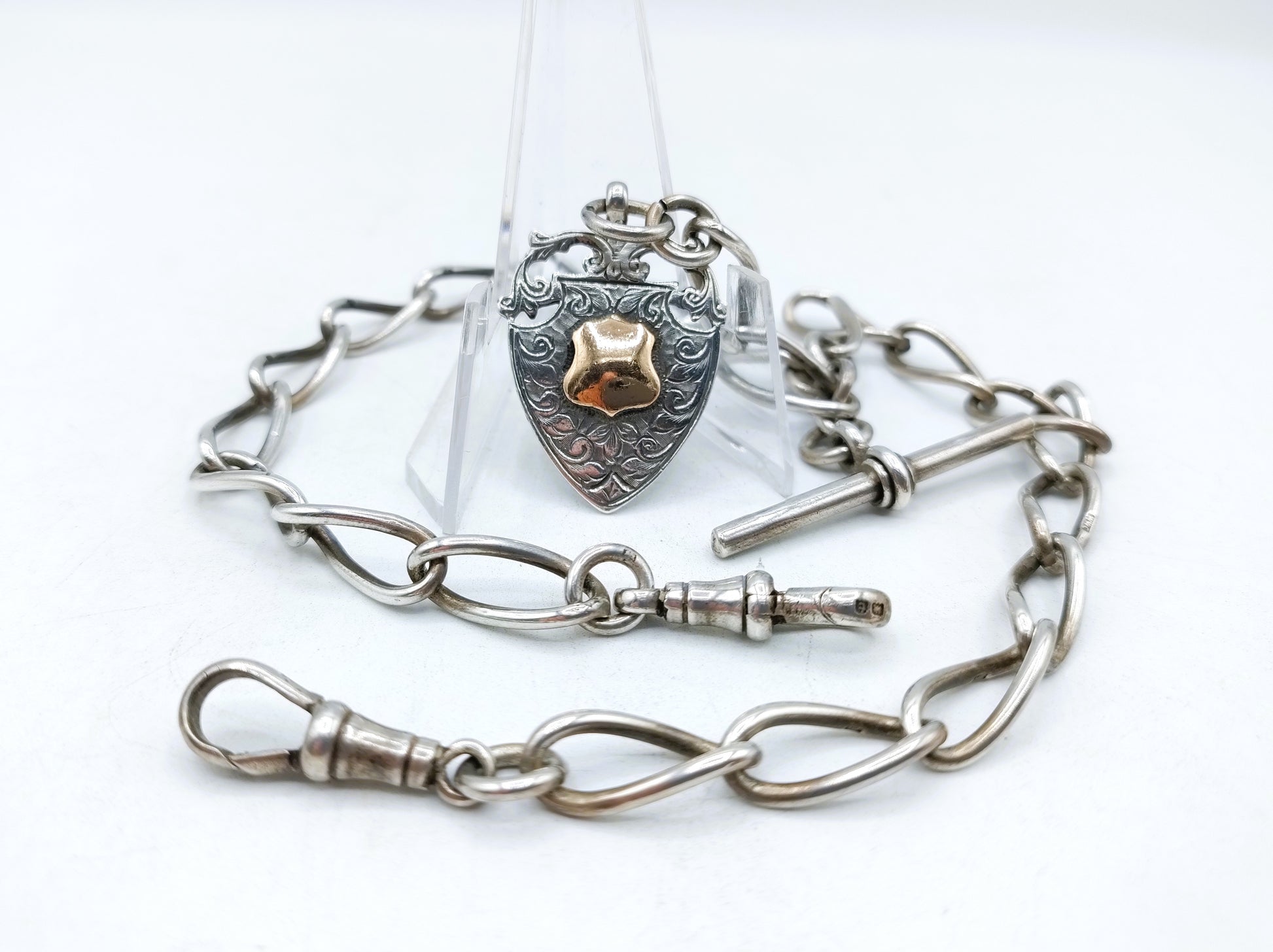 Silberne Uhrenkette mit Schild, W. Walter / Birmingham, 1918.