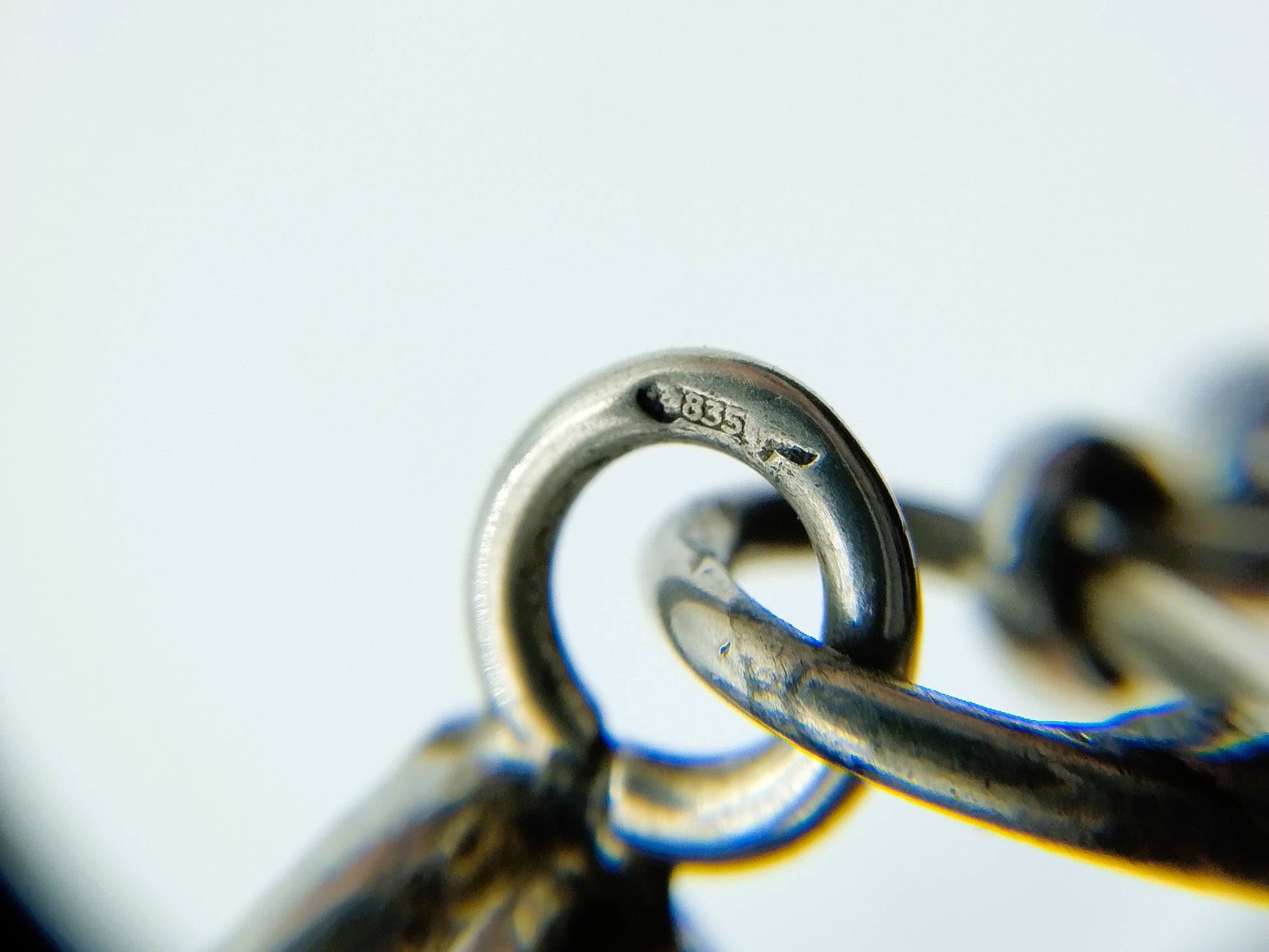 Das Collier ist punziert mit dem Schwert 835 für Silber 2. Grades und dem Meisterzeichen MS.