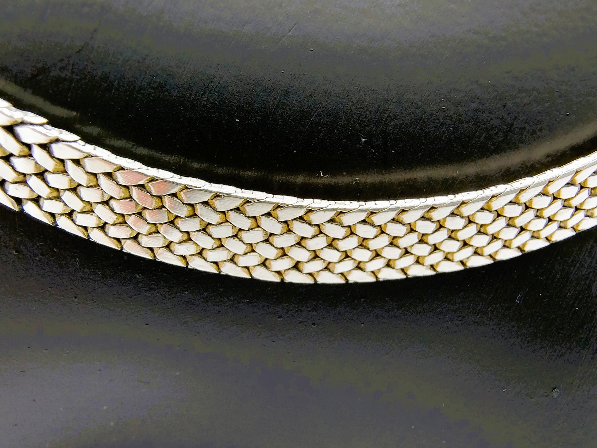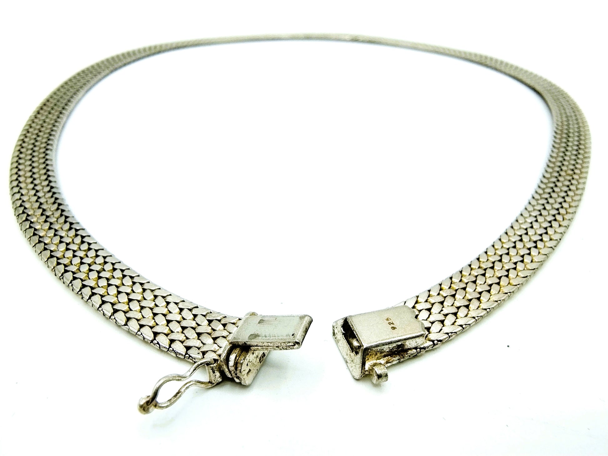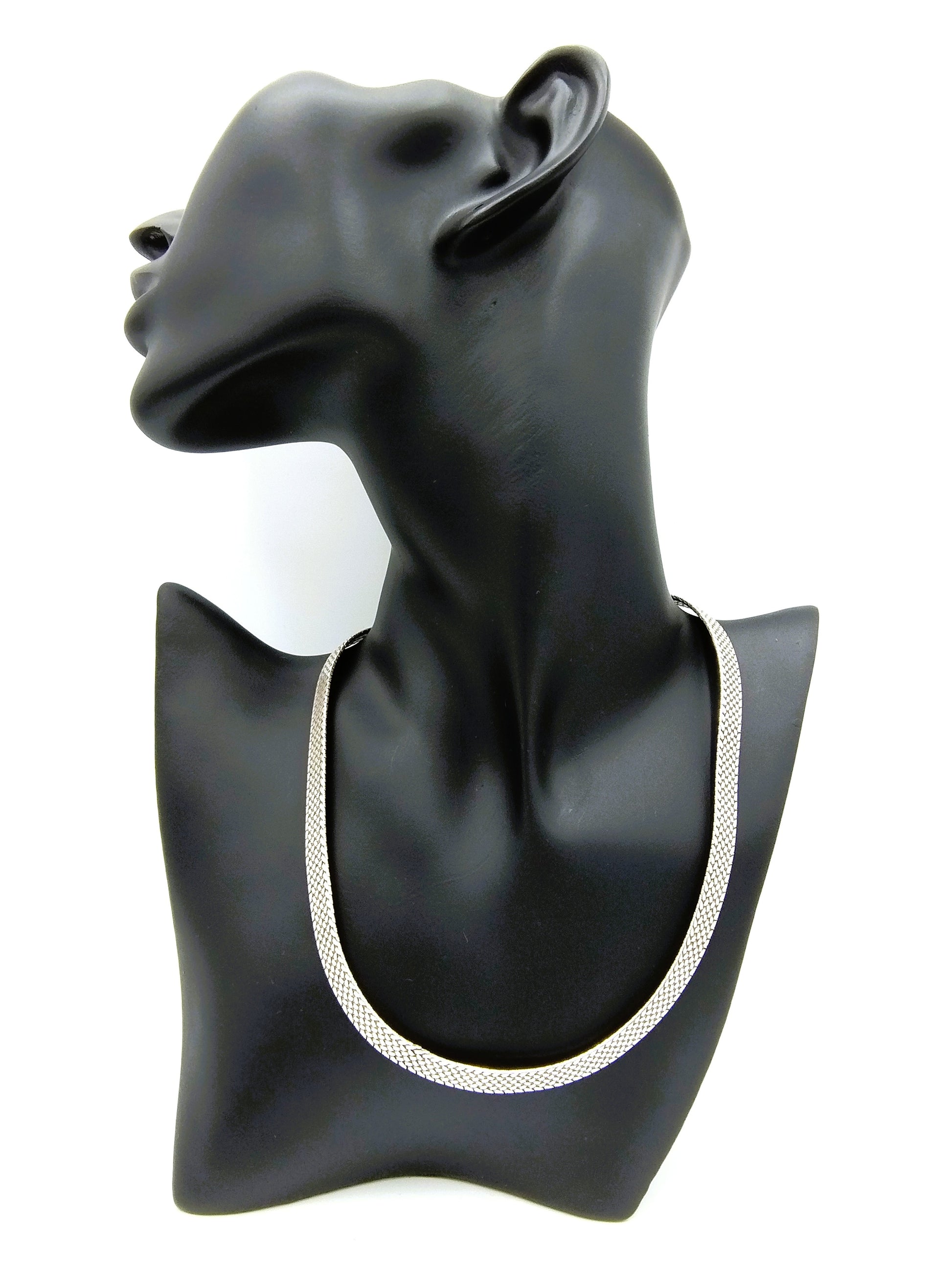 Silberkette mit flachem Glied. Die Kette ist 7 mm breit und fällt glatt.