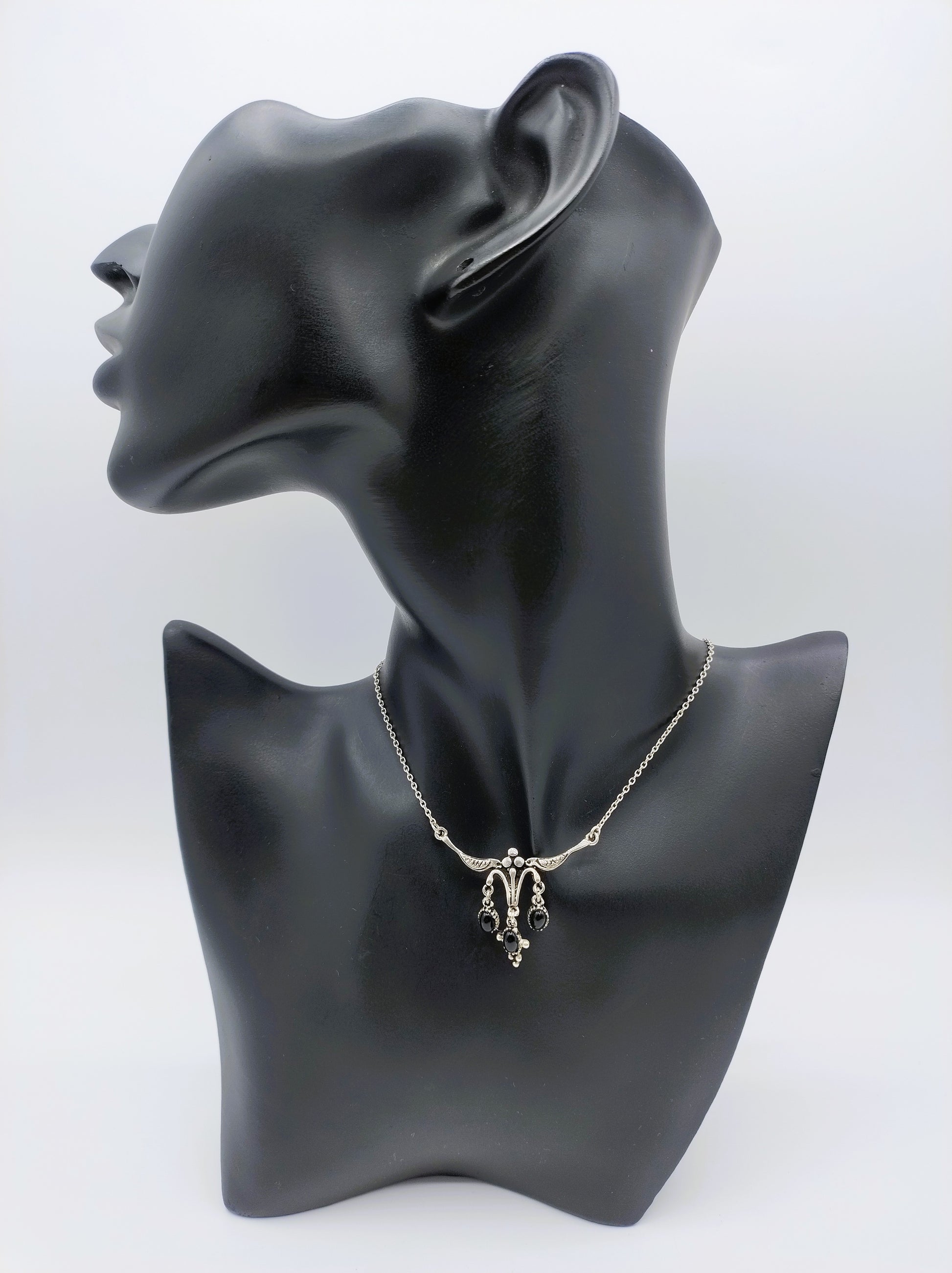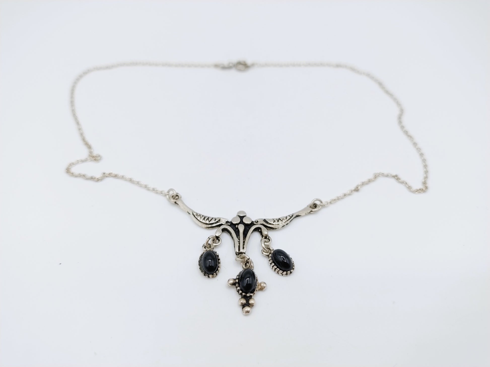 Silberkette mit Onyx-Anhänger, 42 cm
