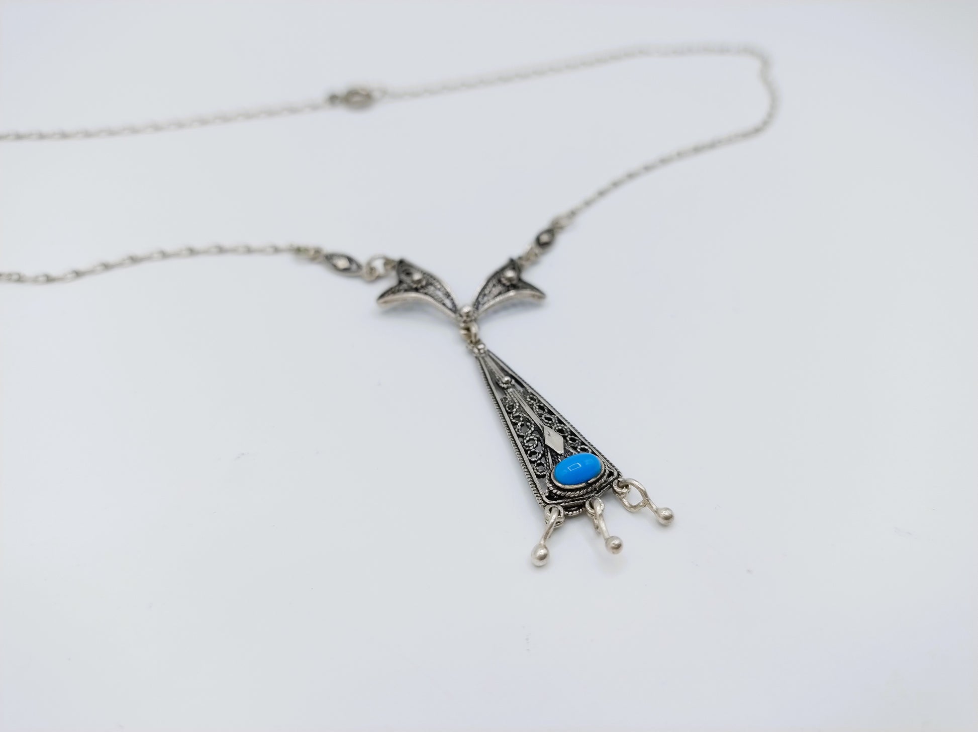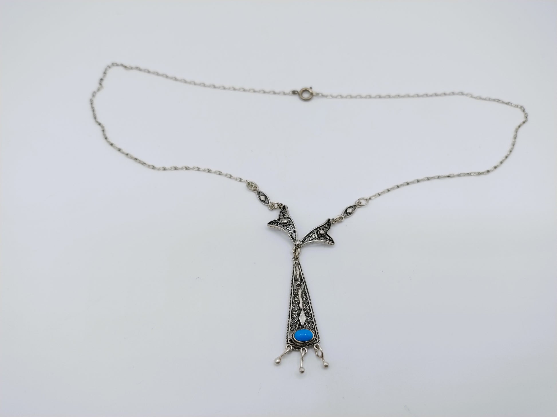 Silberkette mit Türkisanhänger, 43 cm