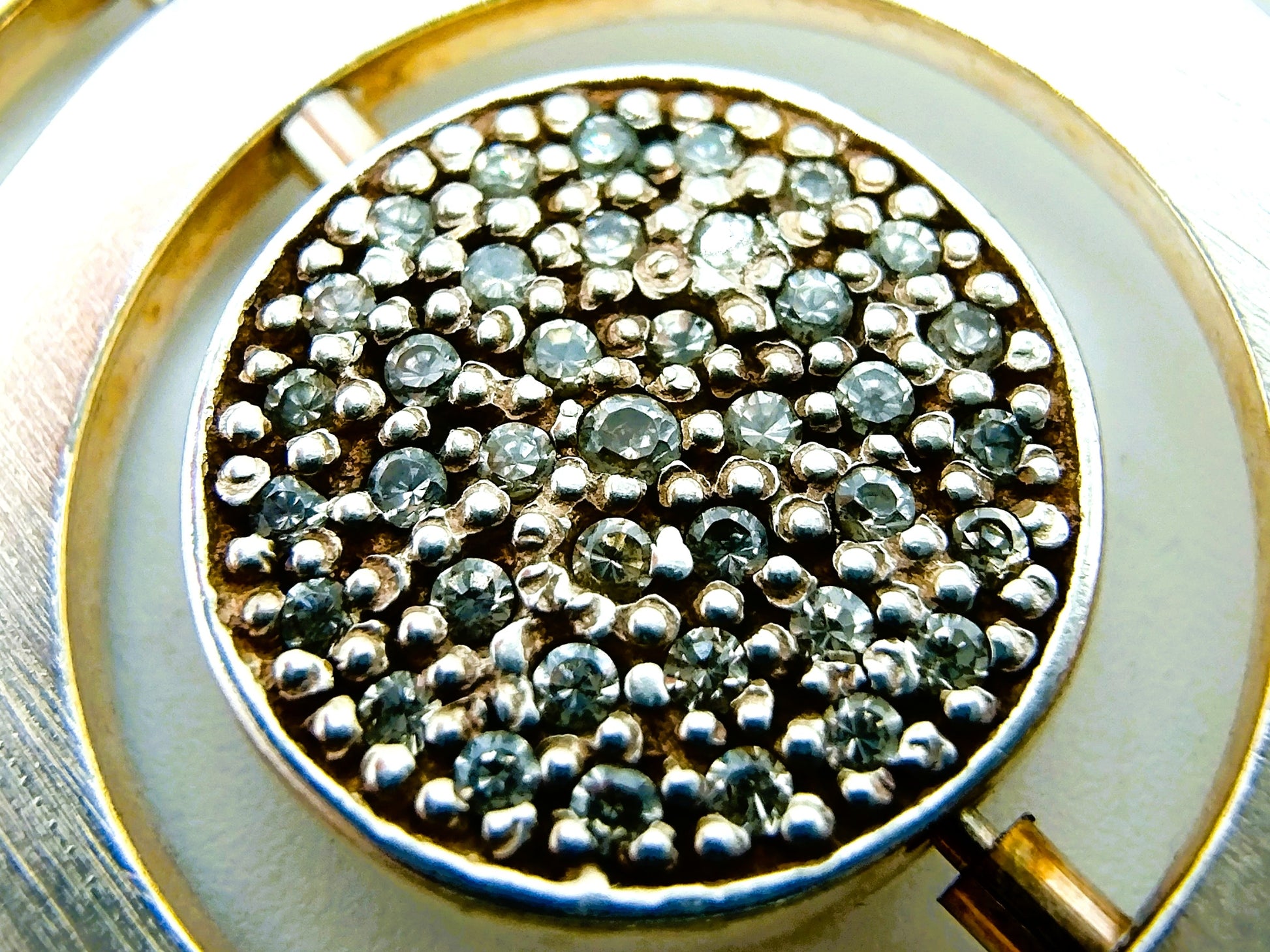 Der Durchmesser des Anhängers beträgt: 3,3 cm. Die Innenseite ist mit Zirkonias besetzt.