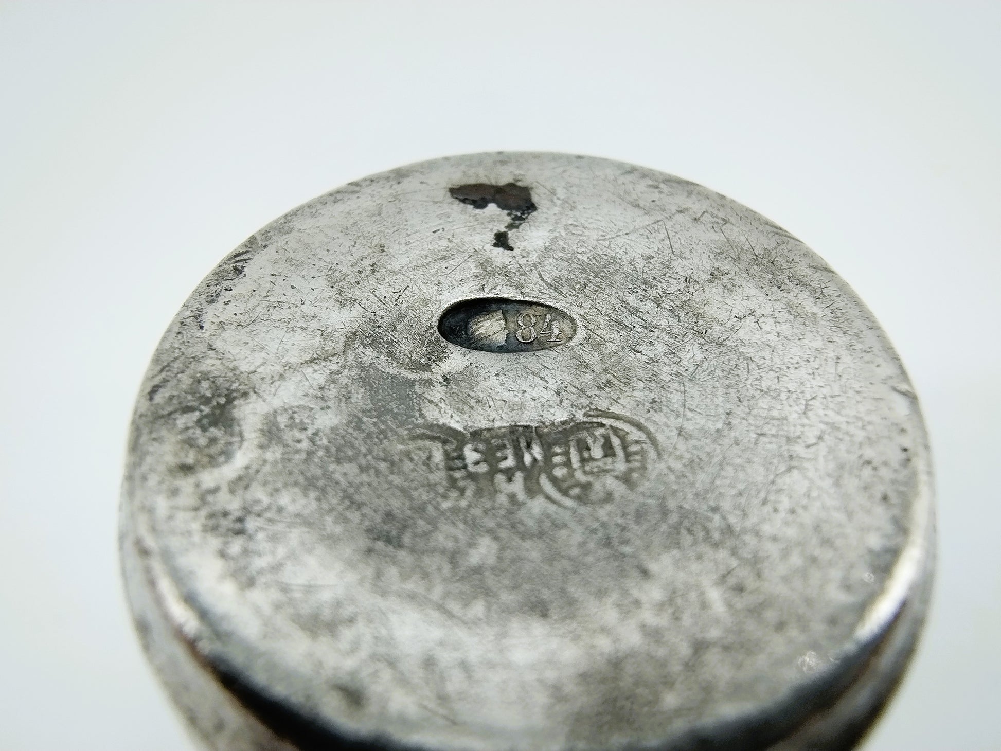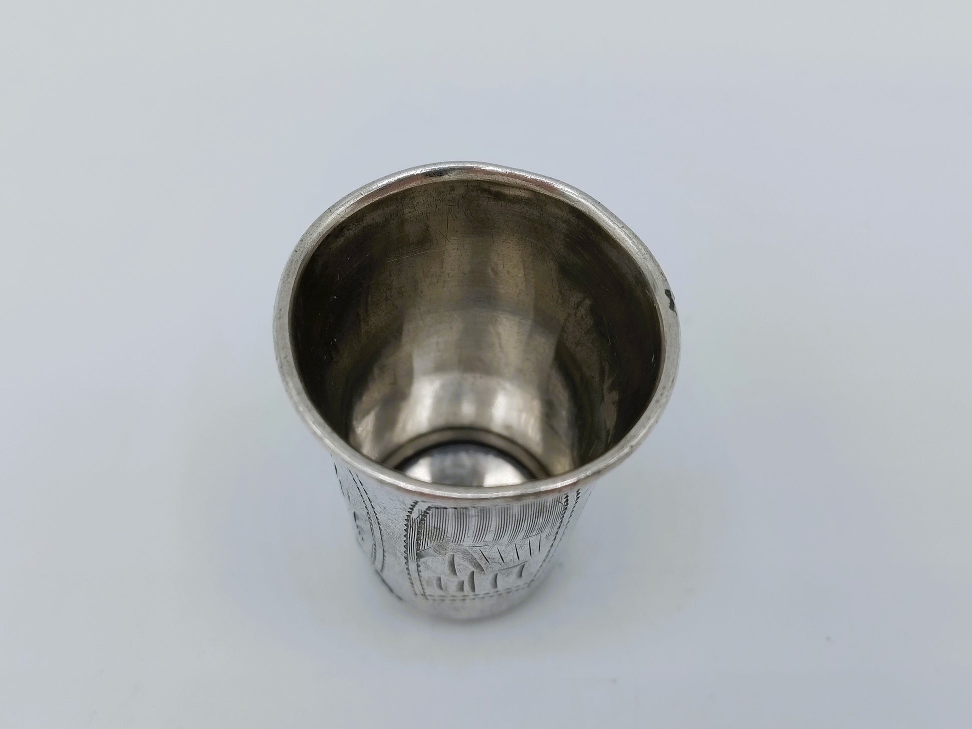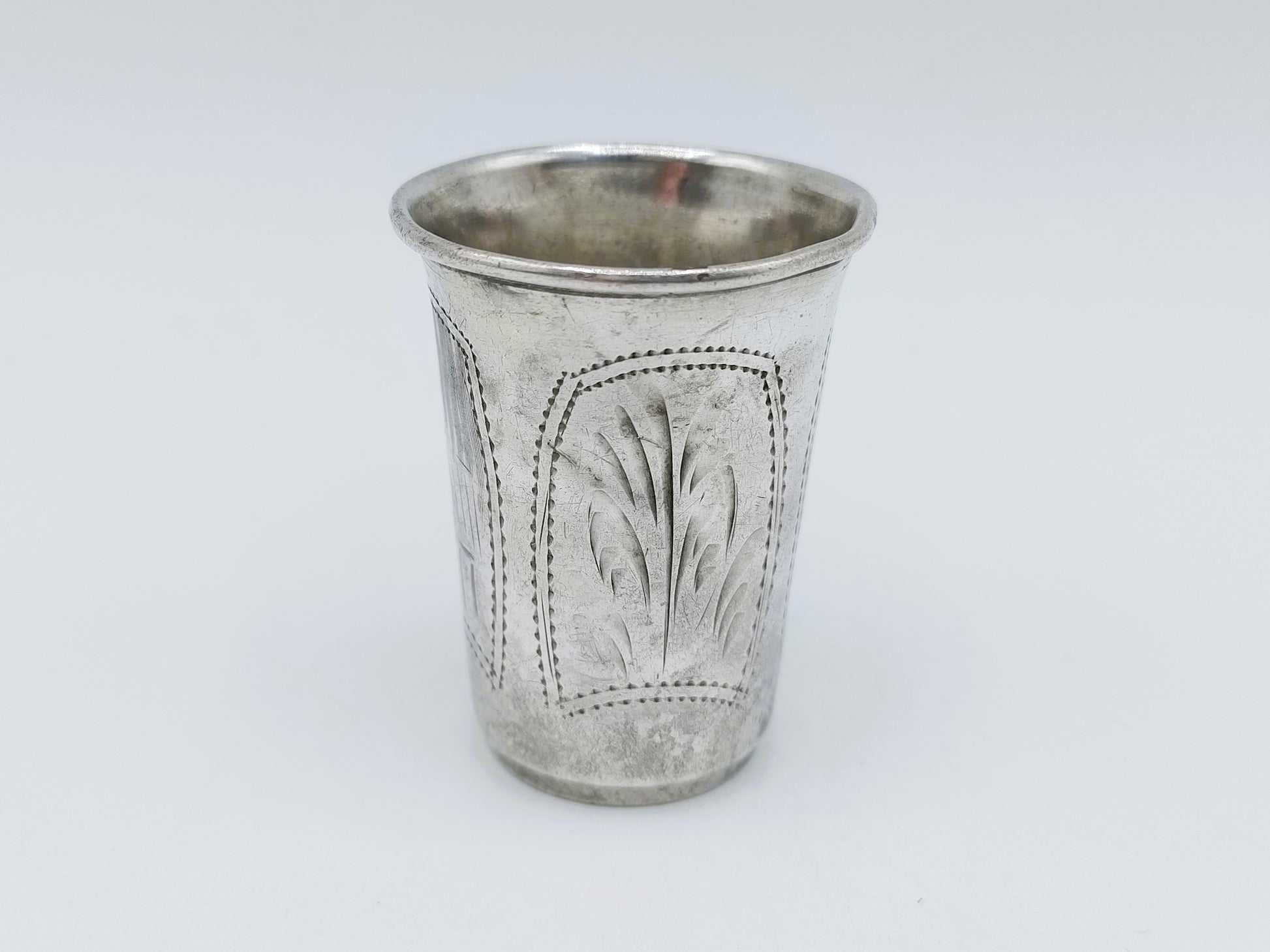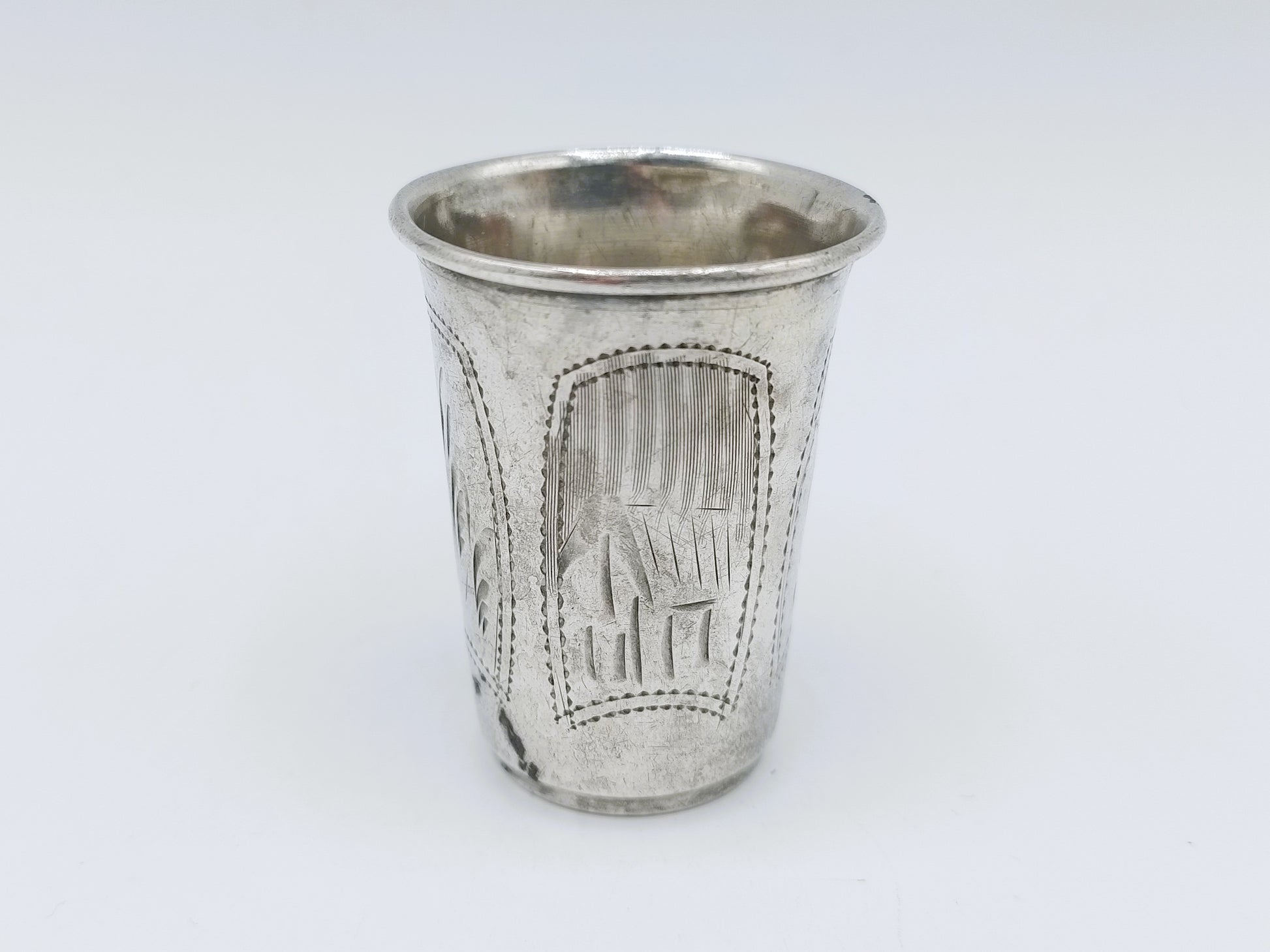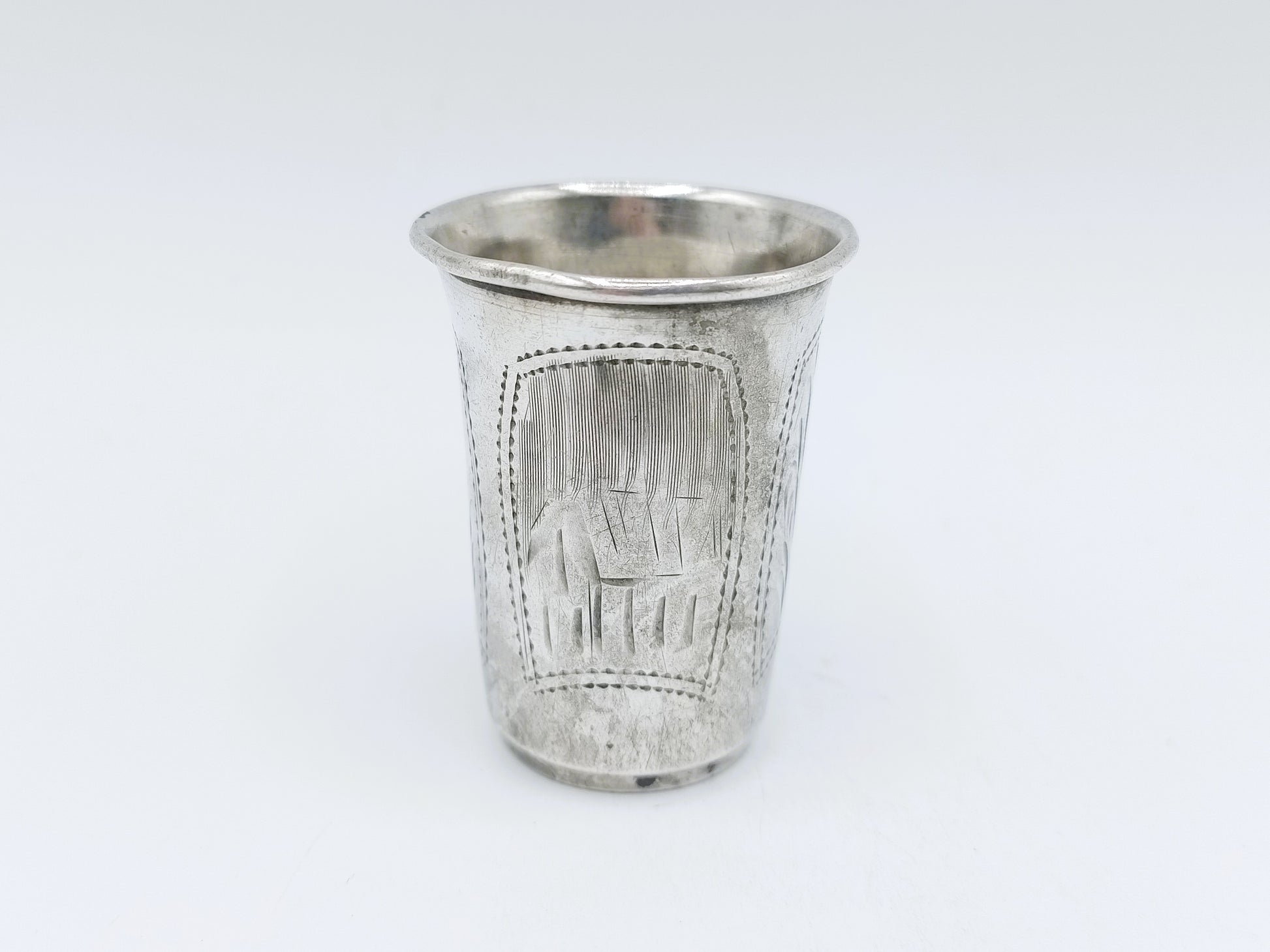 Dieser außergewöhnliche Kidduschbecher ist ein historisches Sammlerstück aus dem Jahr 1907 und wurde in Berditschew vom Kiewer Prüfamt punziert. Der Becher weist eine außergewöhnliche und gut dokumentierte Kombination von Punzen auf, die ausschließlich in diesem Jahr verwendet wurden.