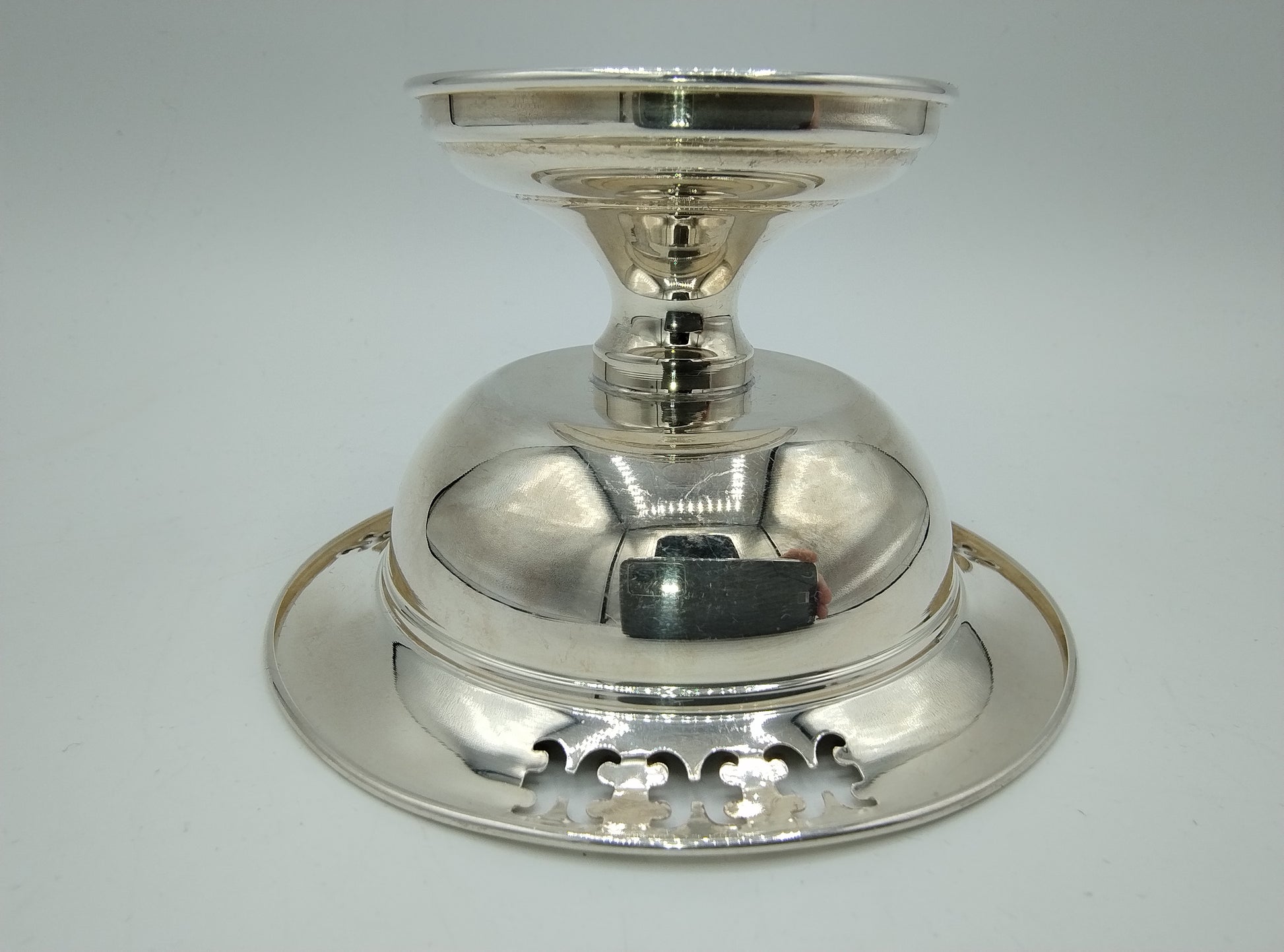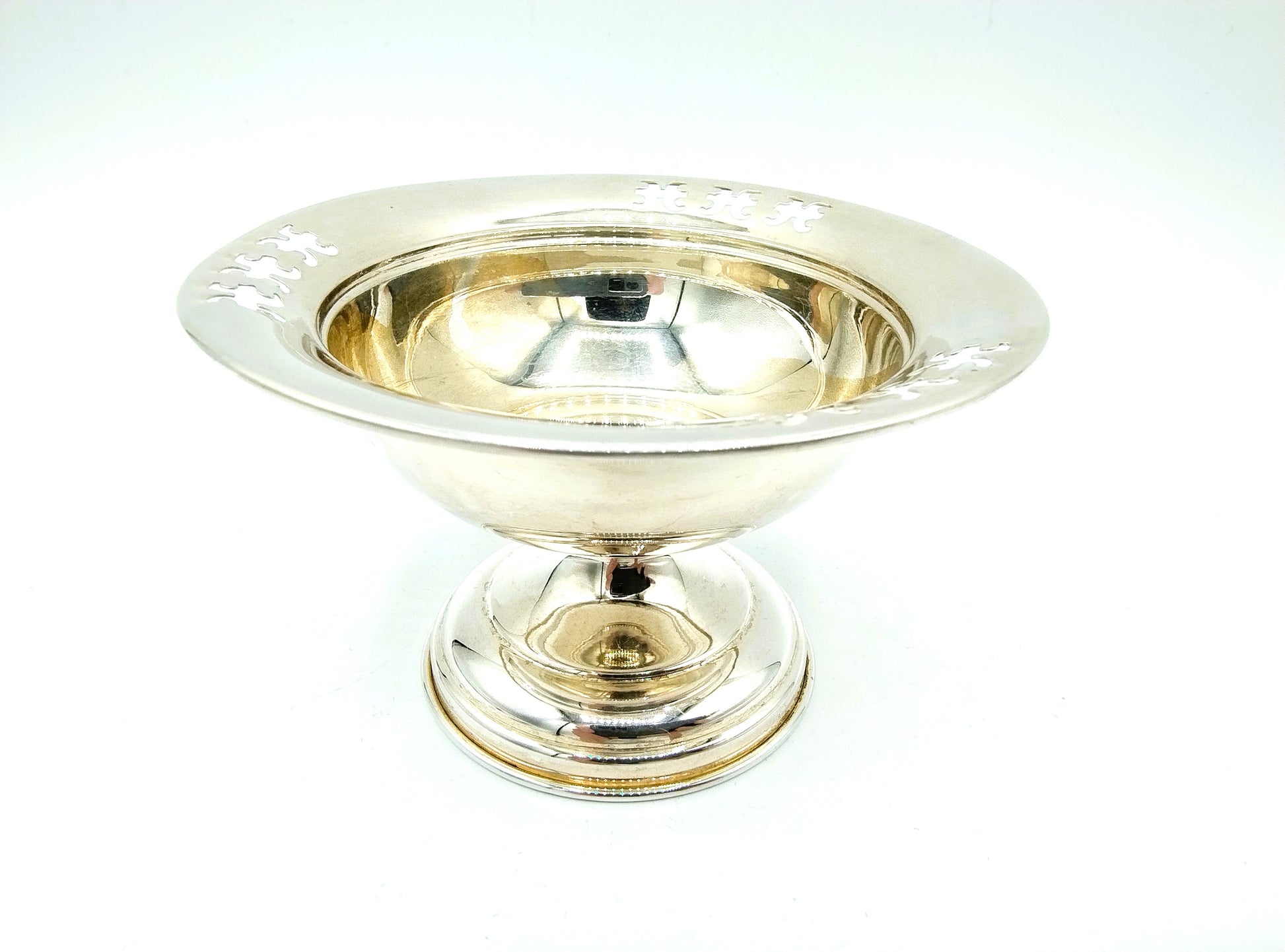 Silberschale auf Fuß mit gestanzten Figuren aus Italien.