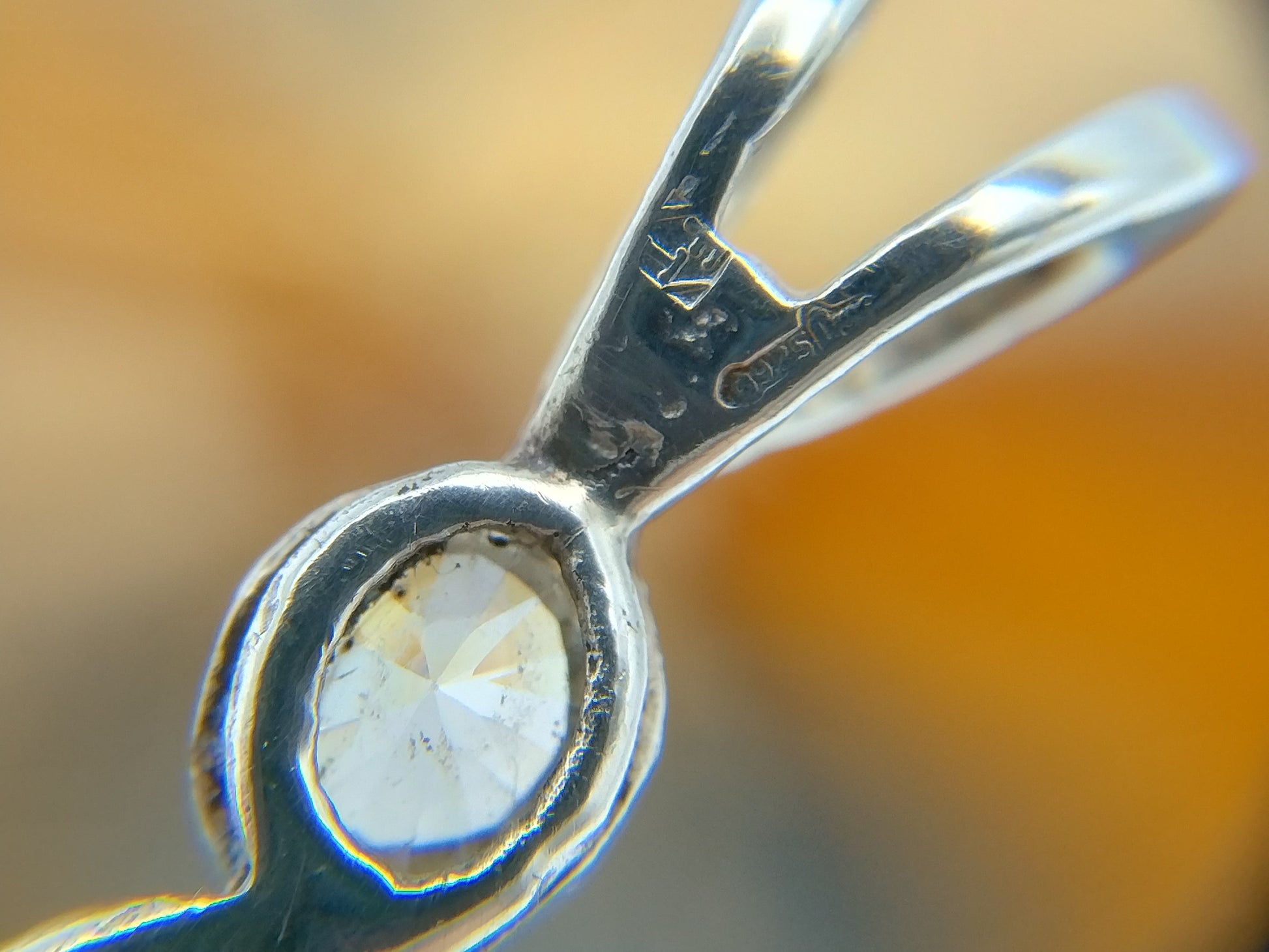 Der Anhänger ist mit dem Feingehaltsstempel 925 für Silber 1. Güteklasse und dem Meisterstempel FT gekennzeichnet.