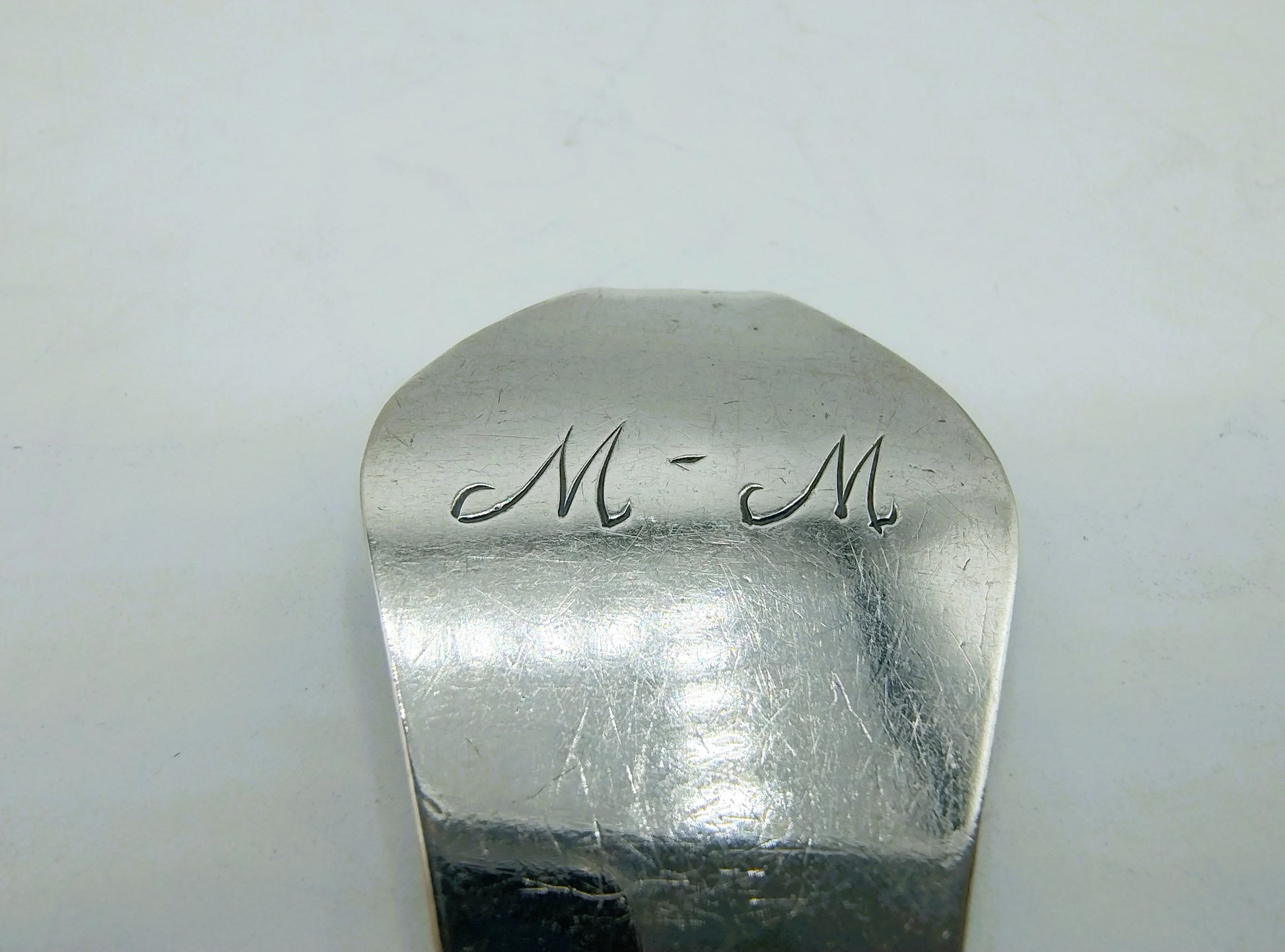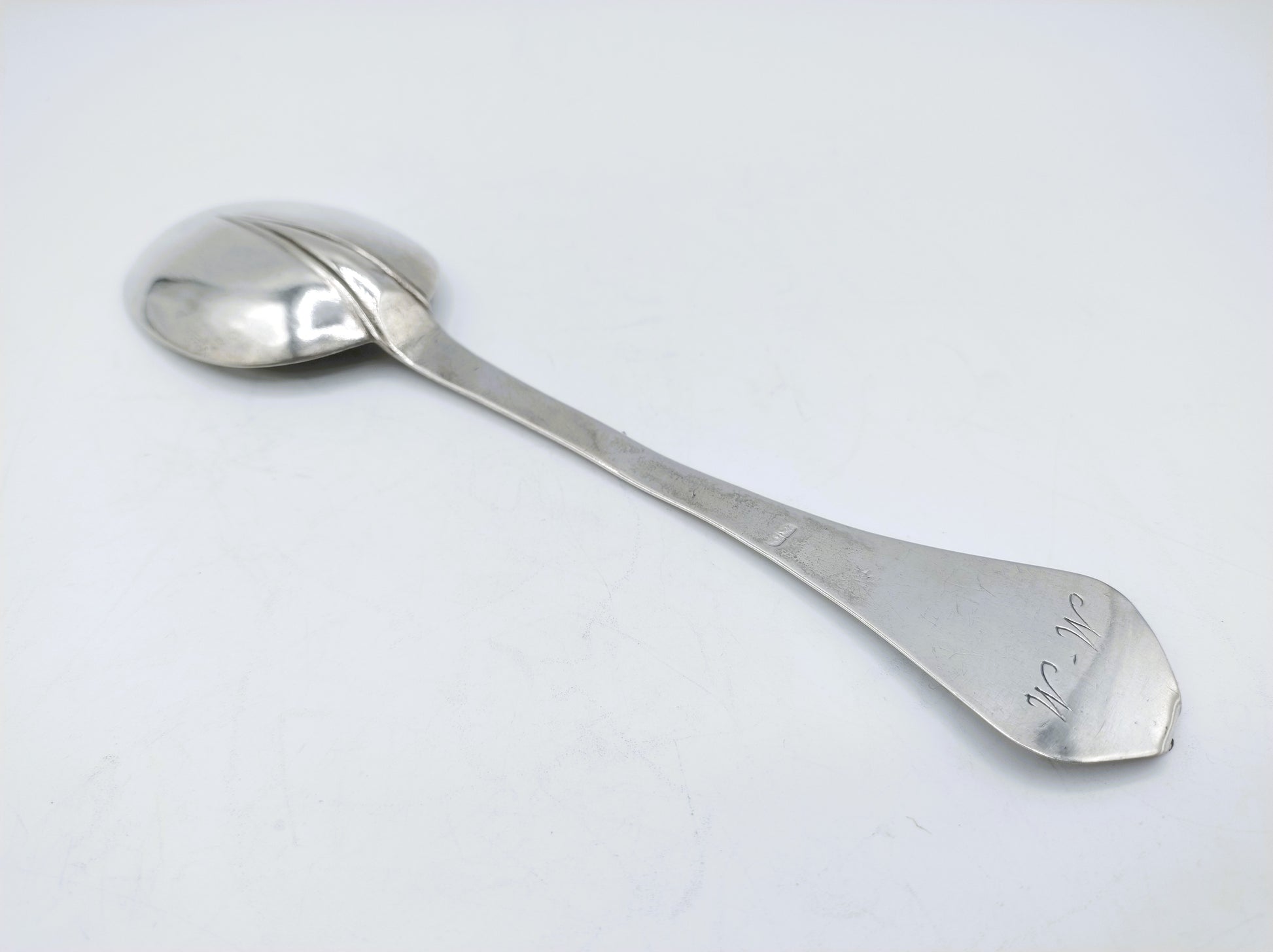 Der Löffel trägt die Initialen MM und wurde vermutlich als Geburtslöffel geschenkt.