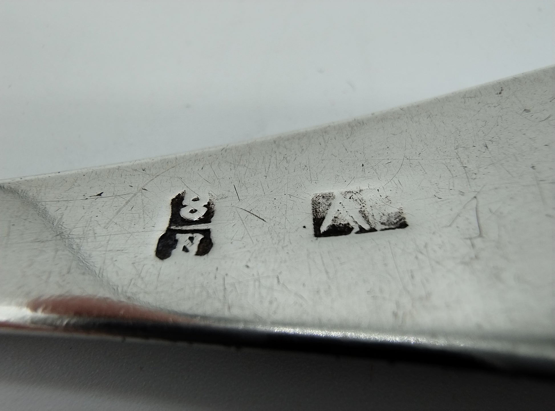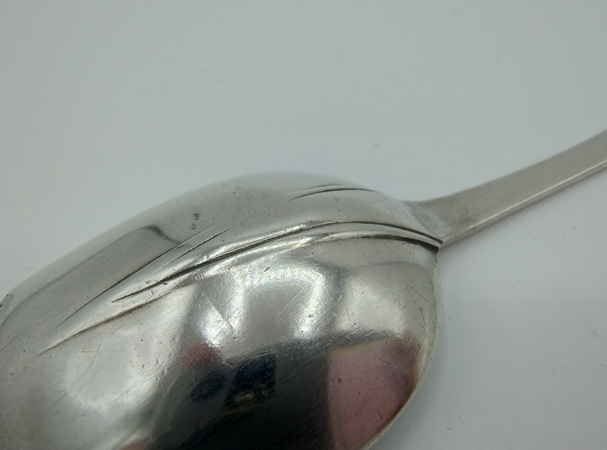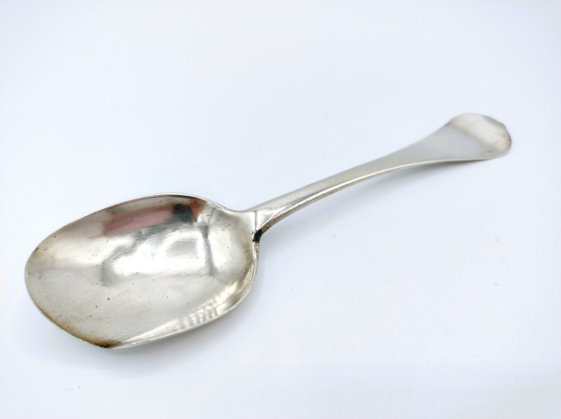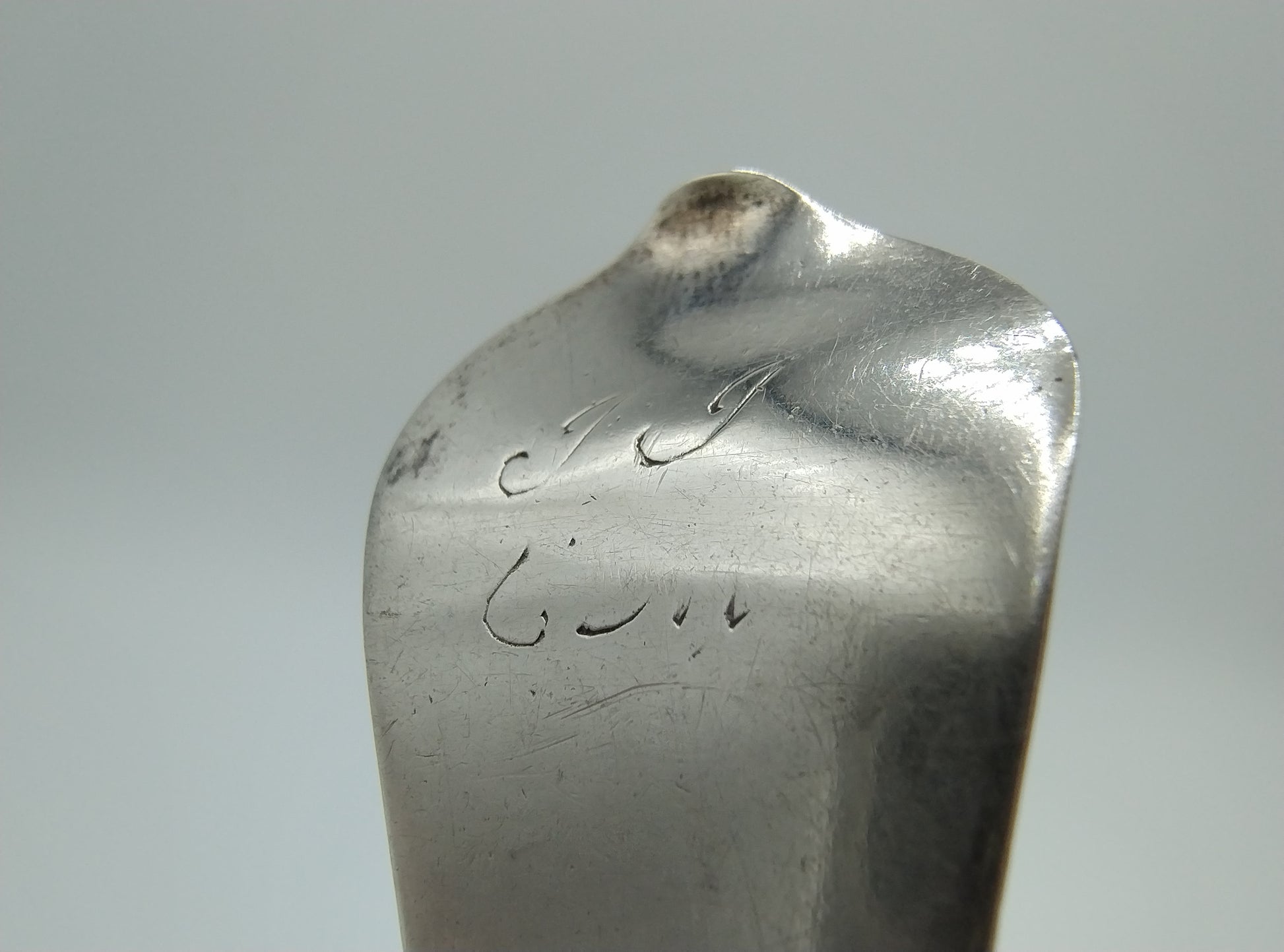 Silberlöffel aus dem 18. Jahrhundert aus Groningen. Der Löffel wurde vom Silberschmied Abraham Pootholt hergestellt, der von 1761 bis 1796 arbeitete. Der Löffel ist mit der Marke seines Meisters und dem Jahresbuchstaben 8/N für 1785/1786 versehen.