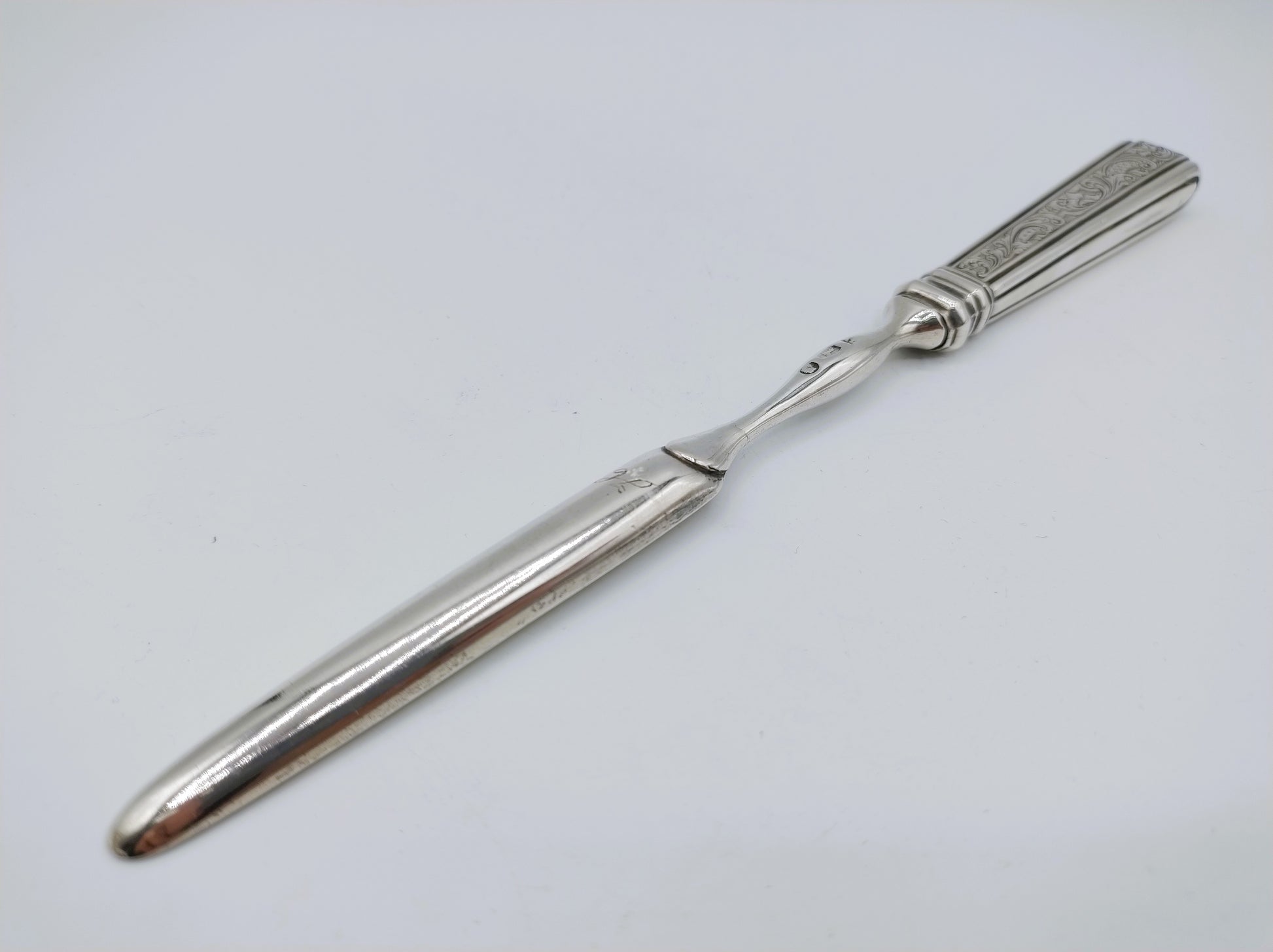 Silberner Markbohrer, hergestellt vom Silberschmied Jan Abraham Lintveld (oder Lintvelt) Sr. aus Amsterdam. Er arbeitete zwischen 1833 und 1864.