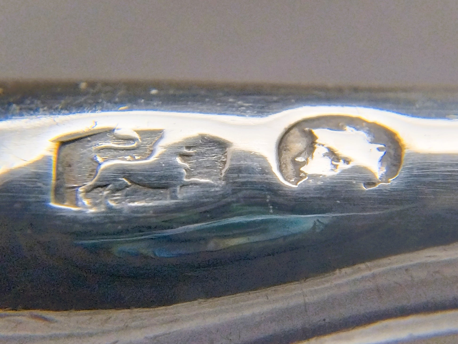 Gepunzt mit Meistermarke AL, zweiter Feingehaltsmarke, Jahresbuchstabe K für 1844 und Minervakopf.