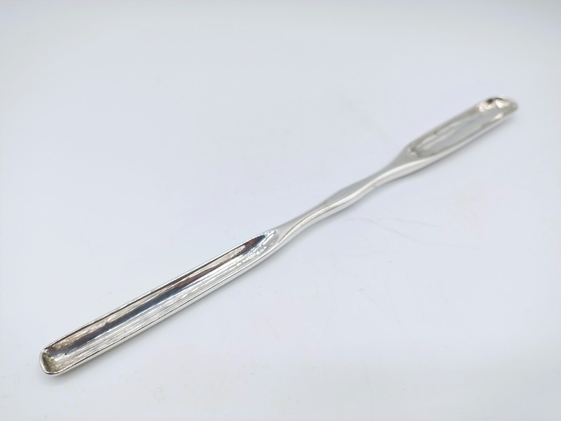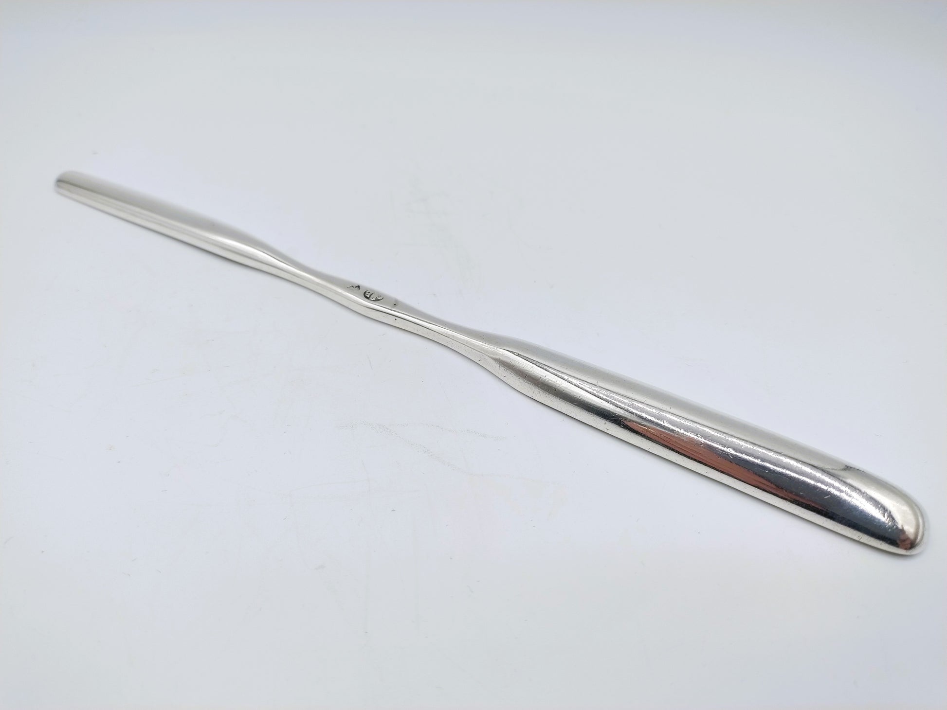 Silberner Markbohrer bzw. Marklöffel. Cornelis Blaaubeen aus Middelburg zugeschrieben. Aktiv von 1733 bis 1747.