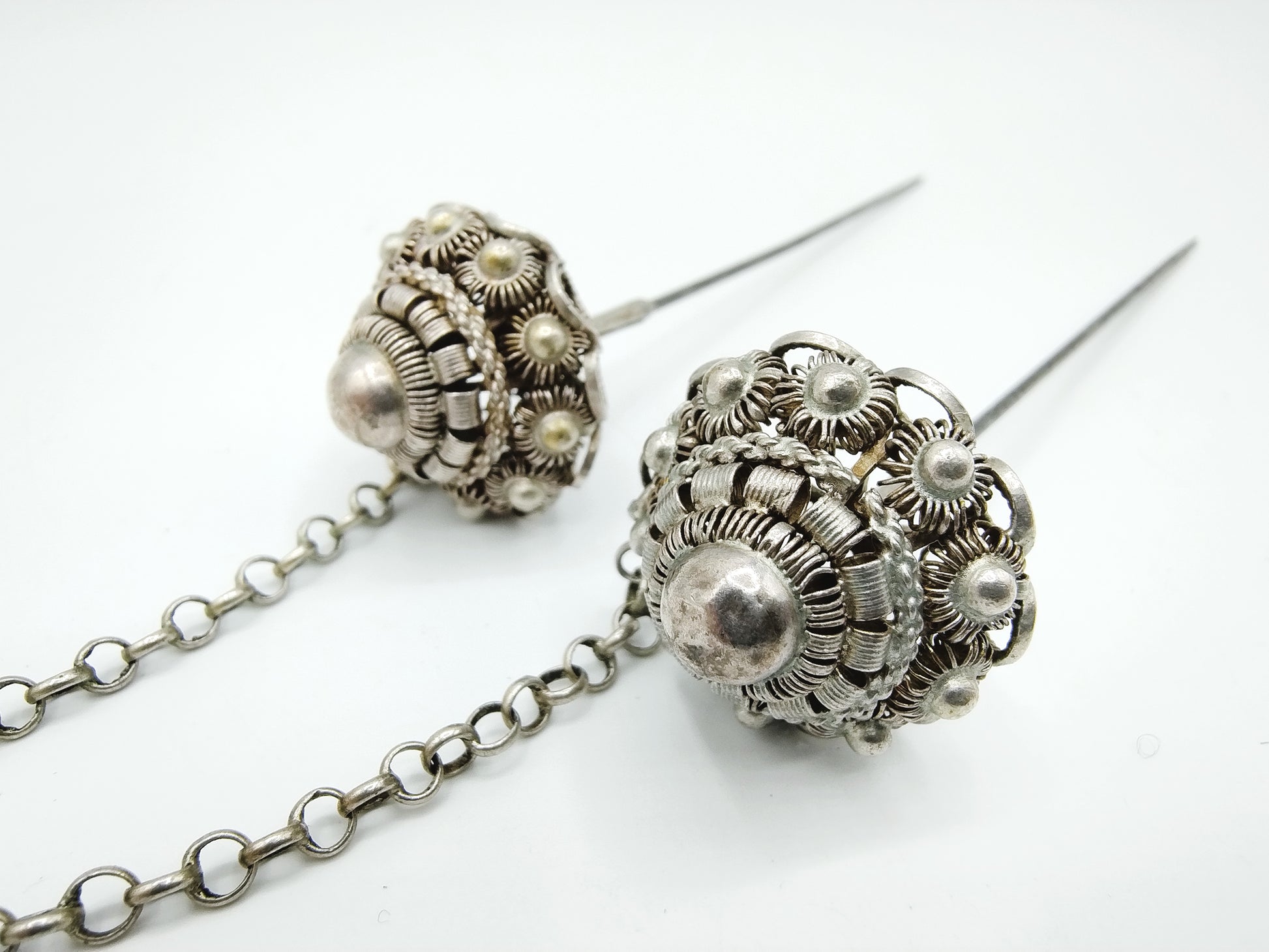 Wahrscheinlich Trauernadeln. Silber wurde während der Trauer getragen.