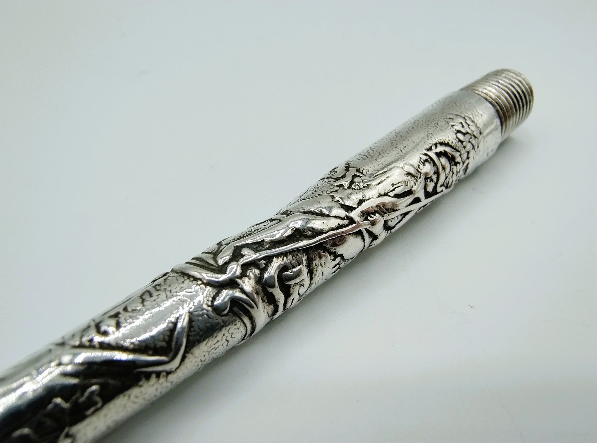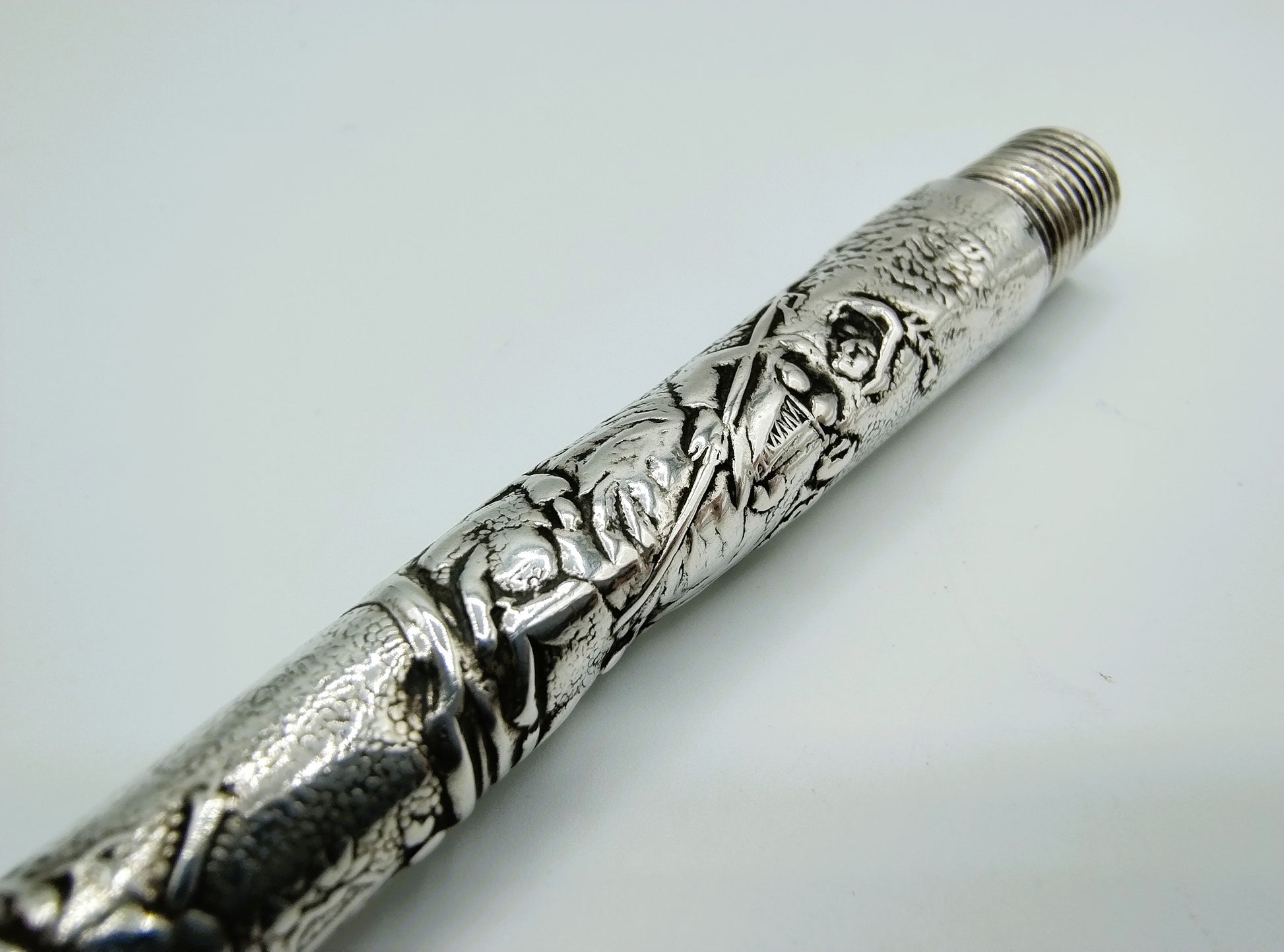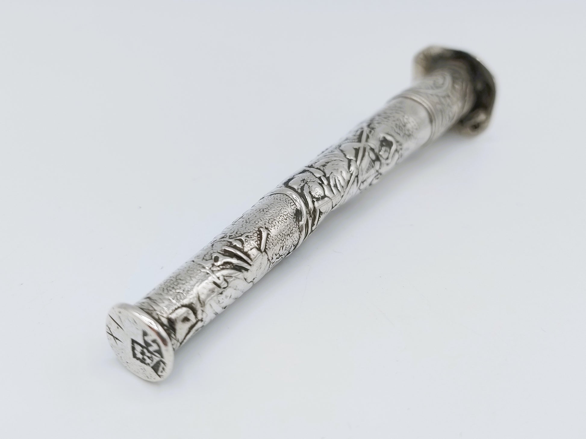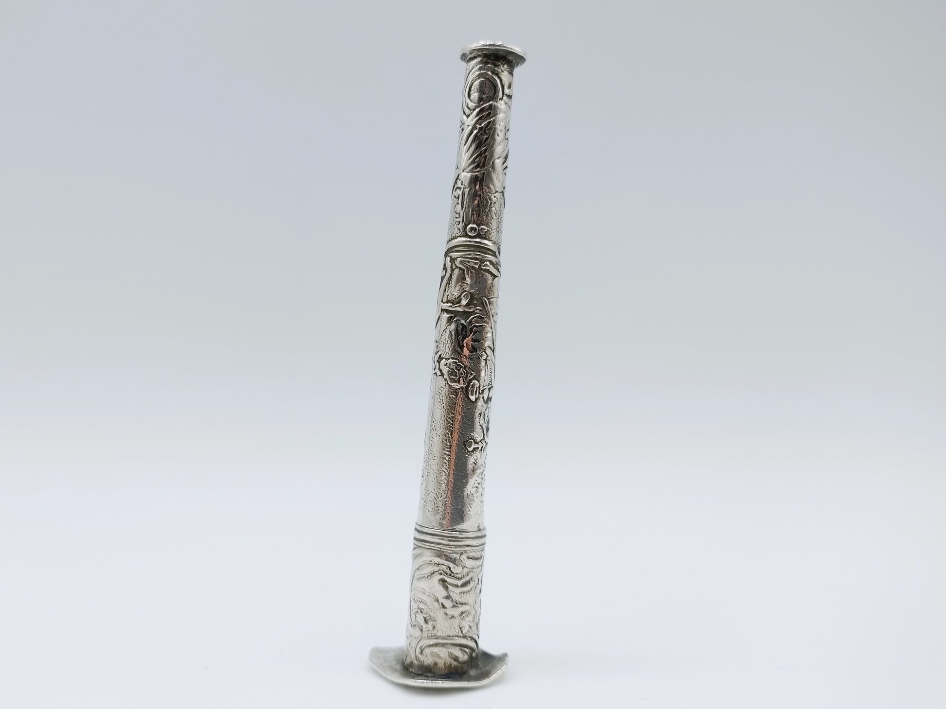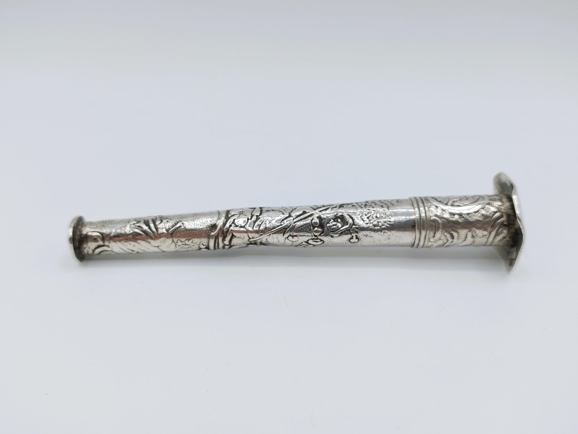 Zilveren naaldenkoker met schroefdeksel, gemaakt door de zilversmid Abraham van Willenswaard uit Schoonhoven. Hij was werkzaam van 1802 tot 1838.
