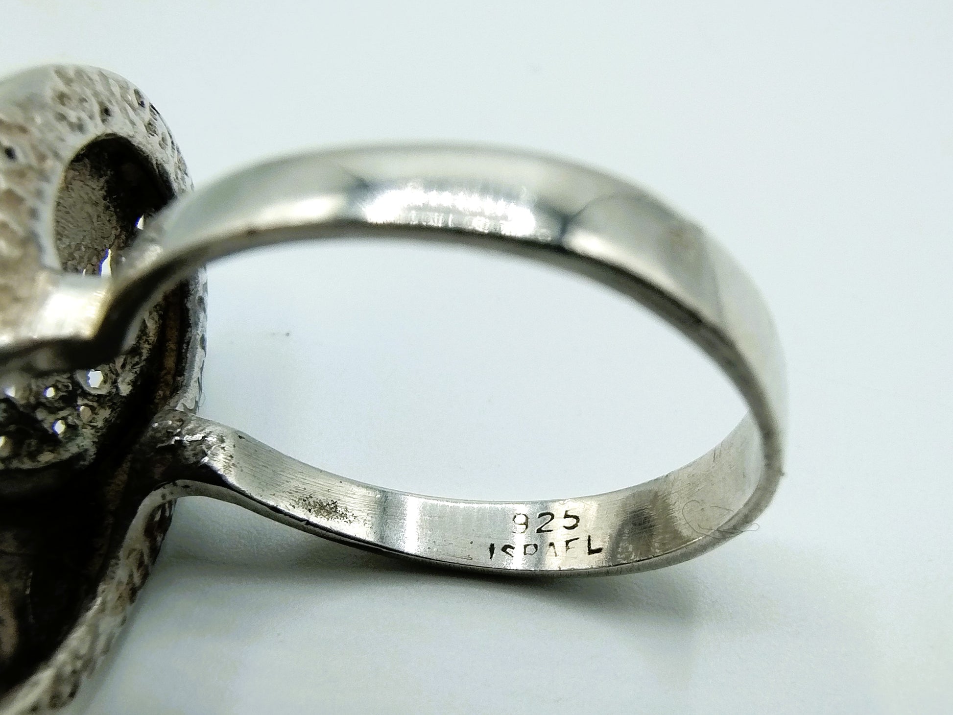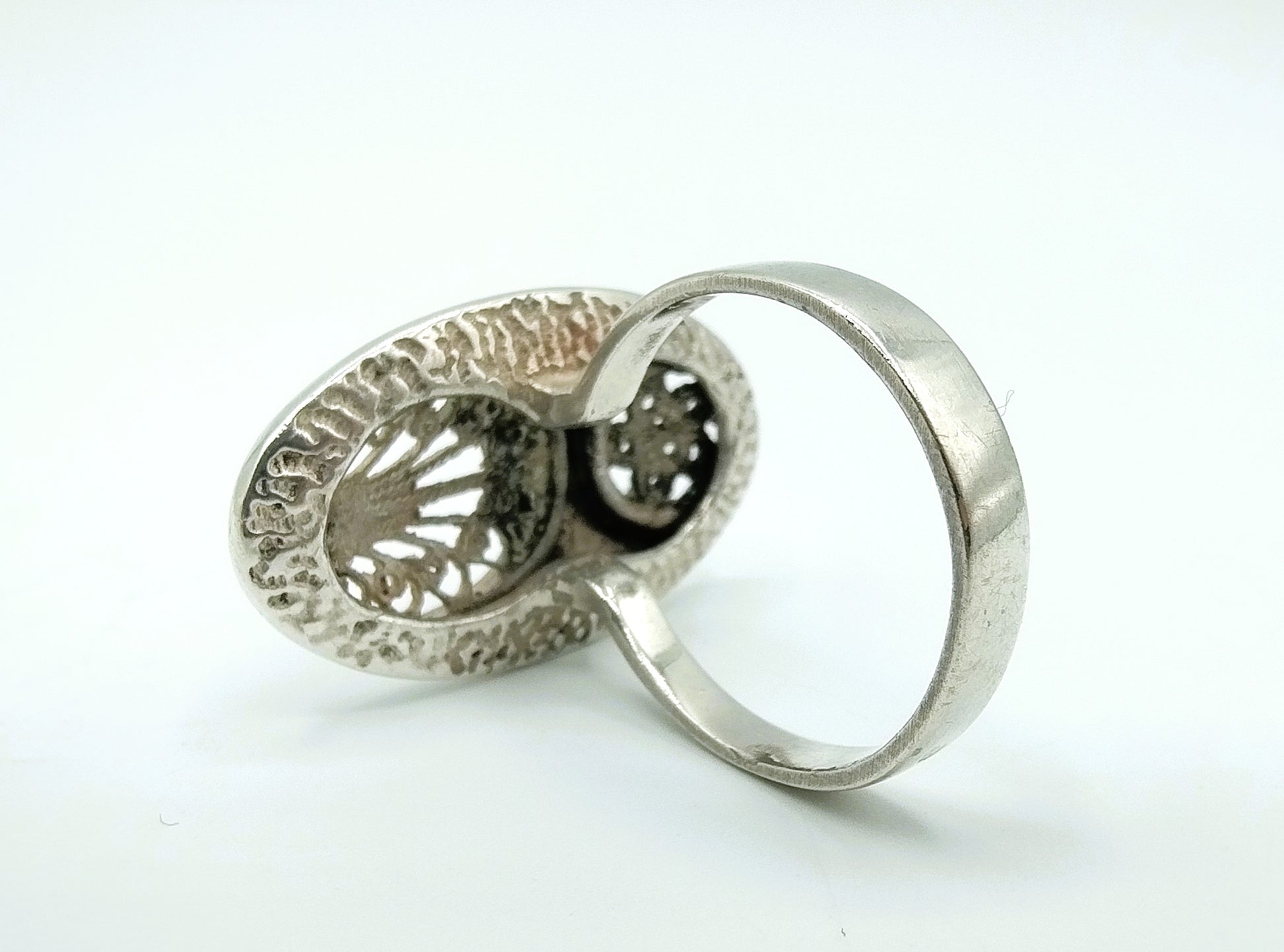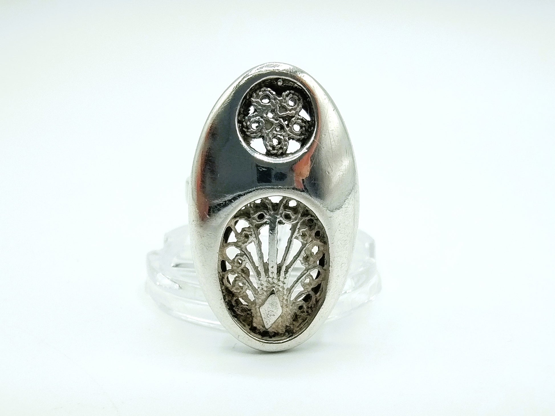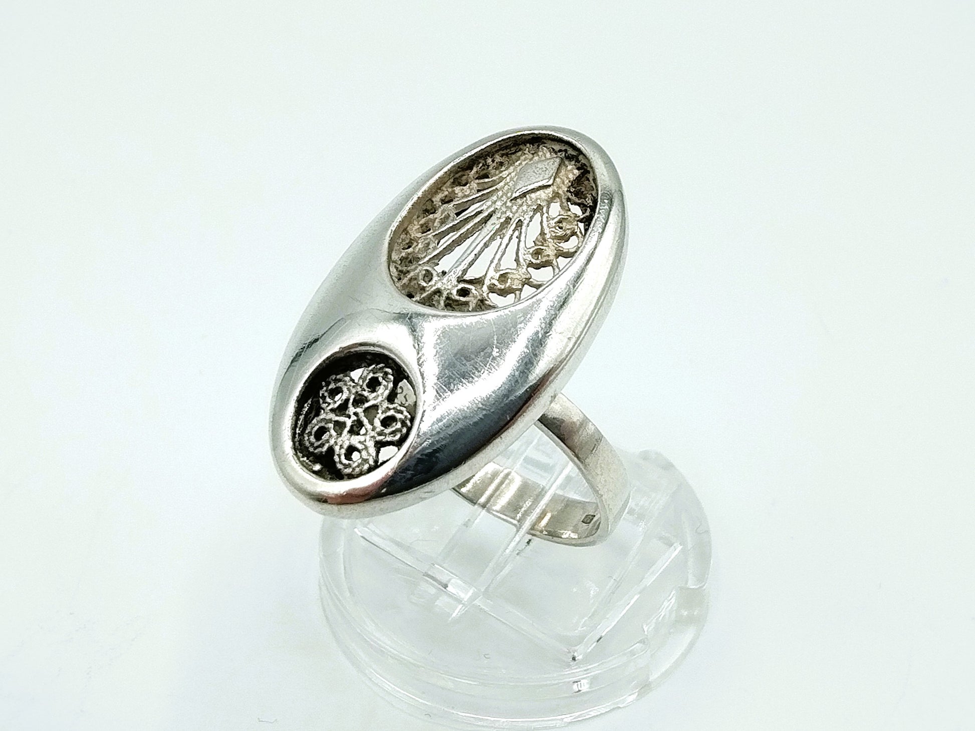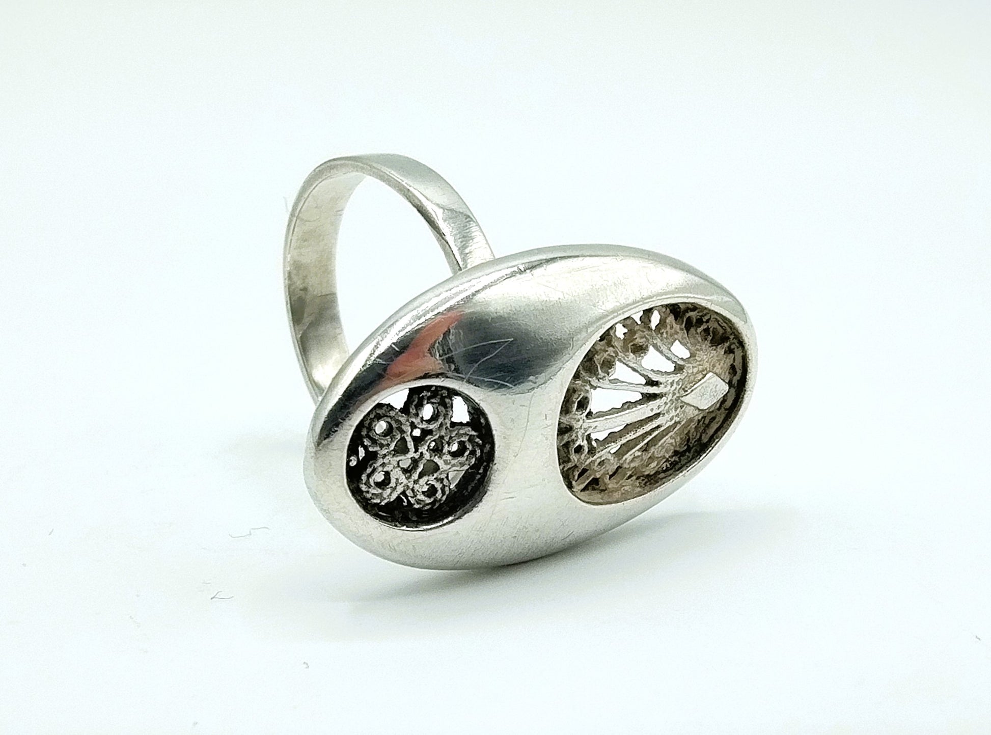 Silberring aus Israel. Der Kopf ist mit filigraner Silberarbeit versehen.