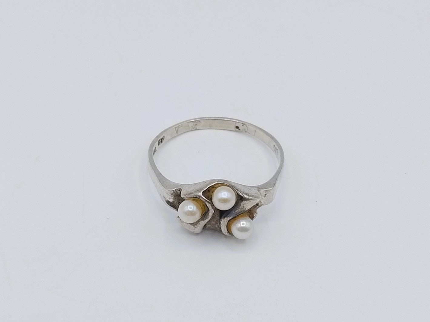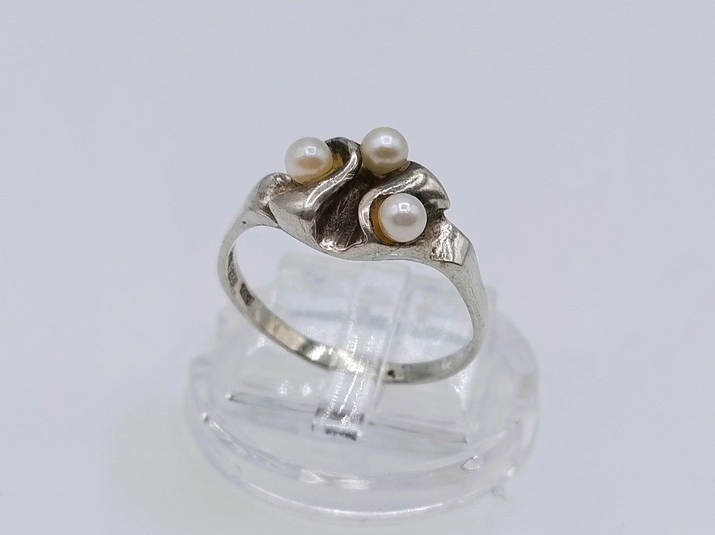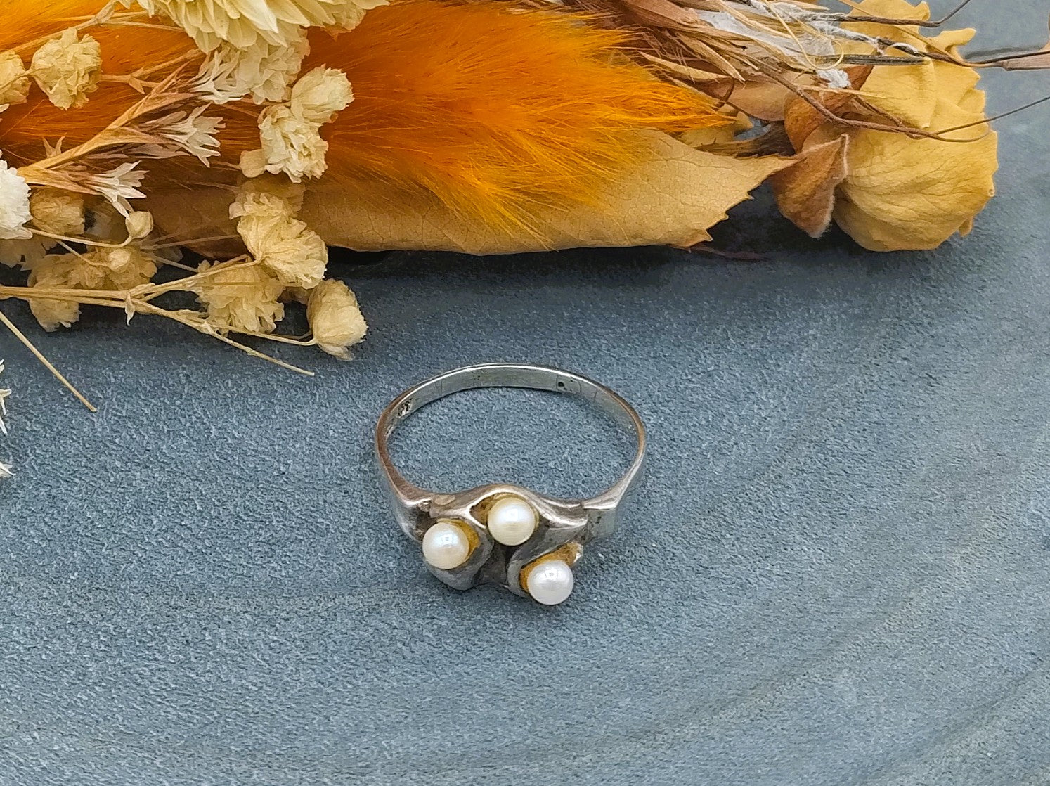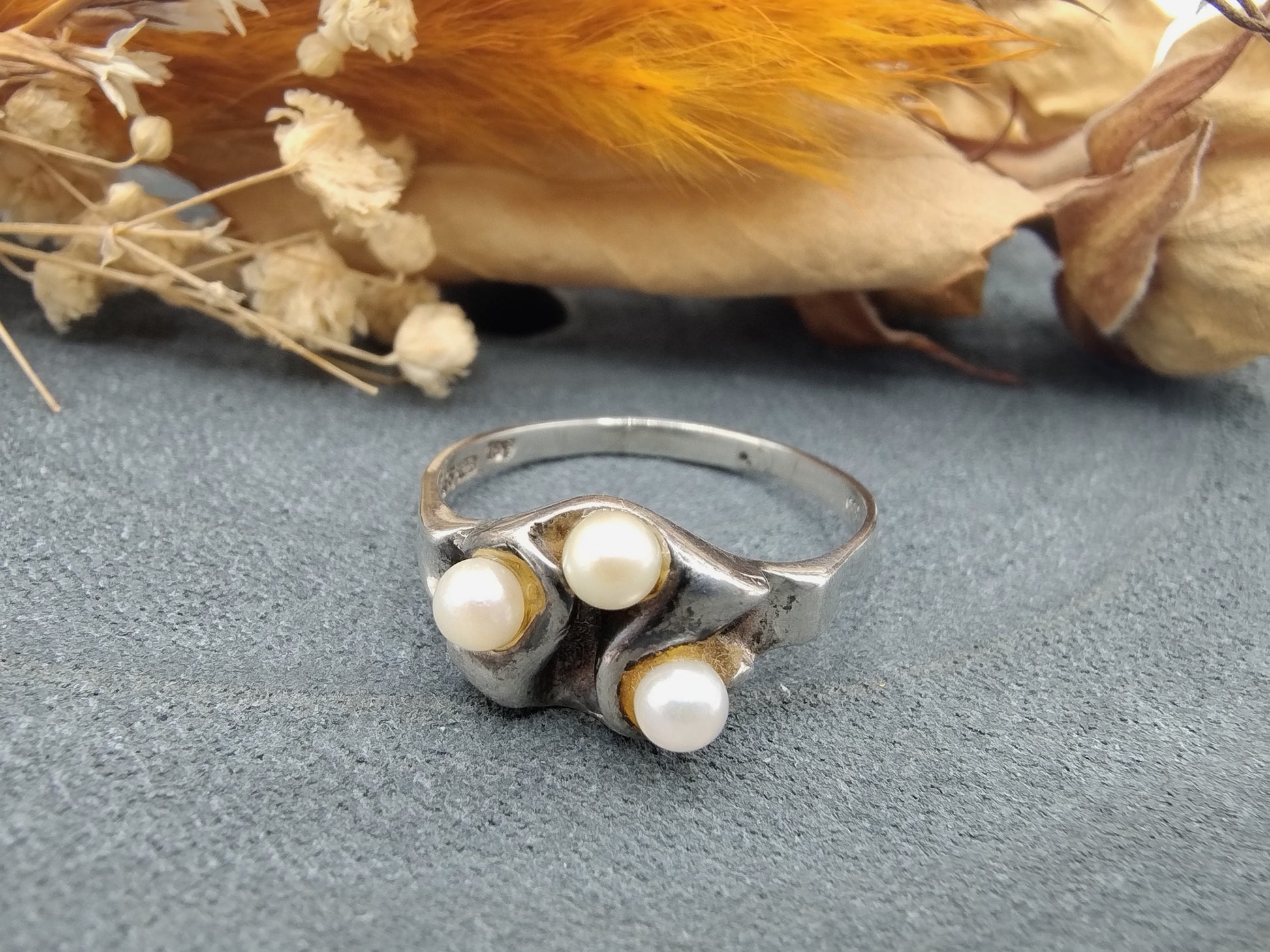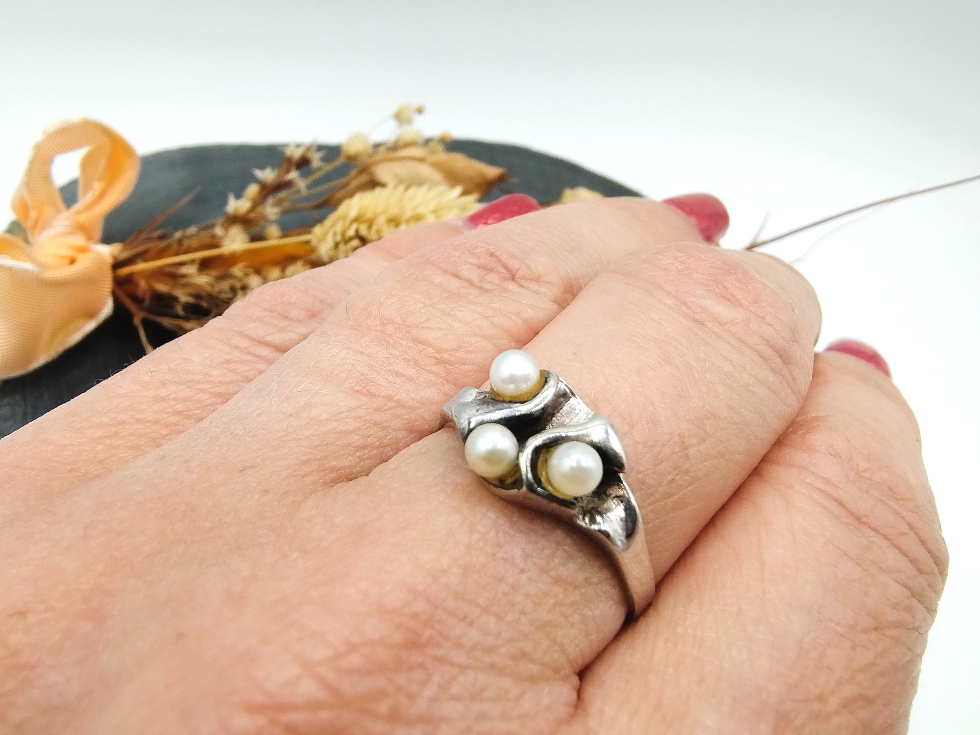 Silberring mit wunderschönem Design und besetzt mit 3 echten Perlen mit 2 mm Durchmesser.