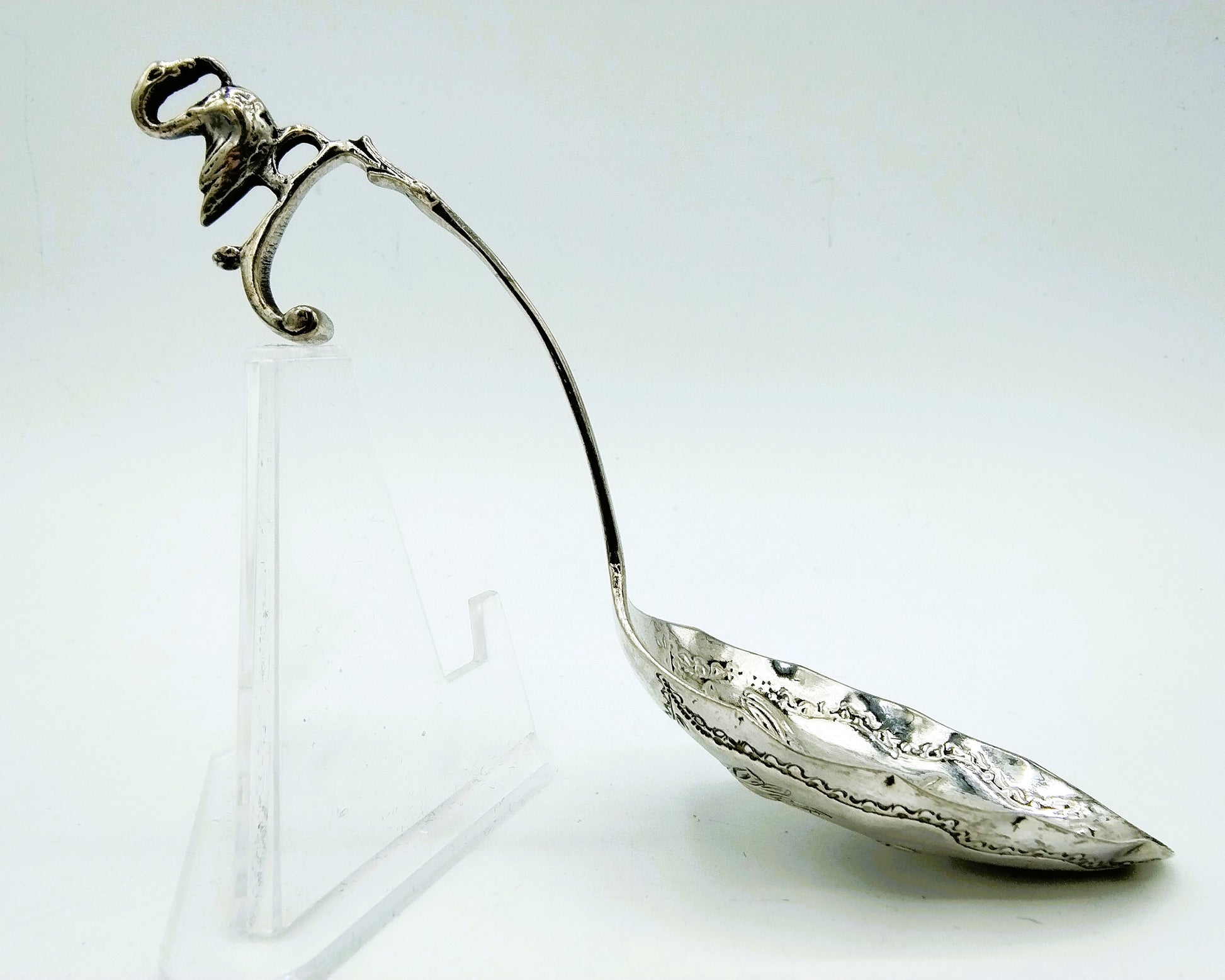 Silberner Sahnelöffel, hergestellt im 18. Jahrhundert vom Silberschmied Hendrik Willem van Giffen aus Groningen, der von 1794 bis 1811 arbeitete.