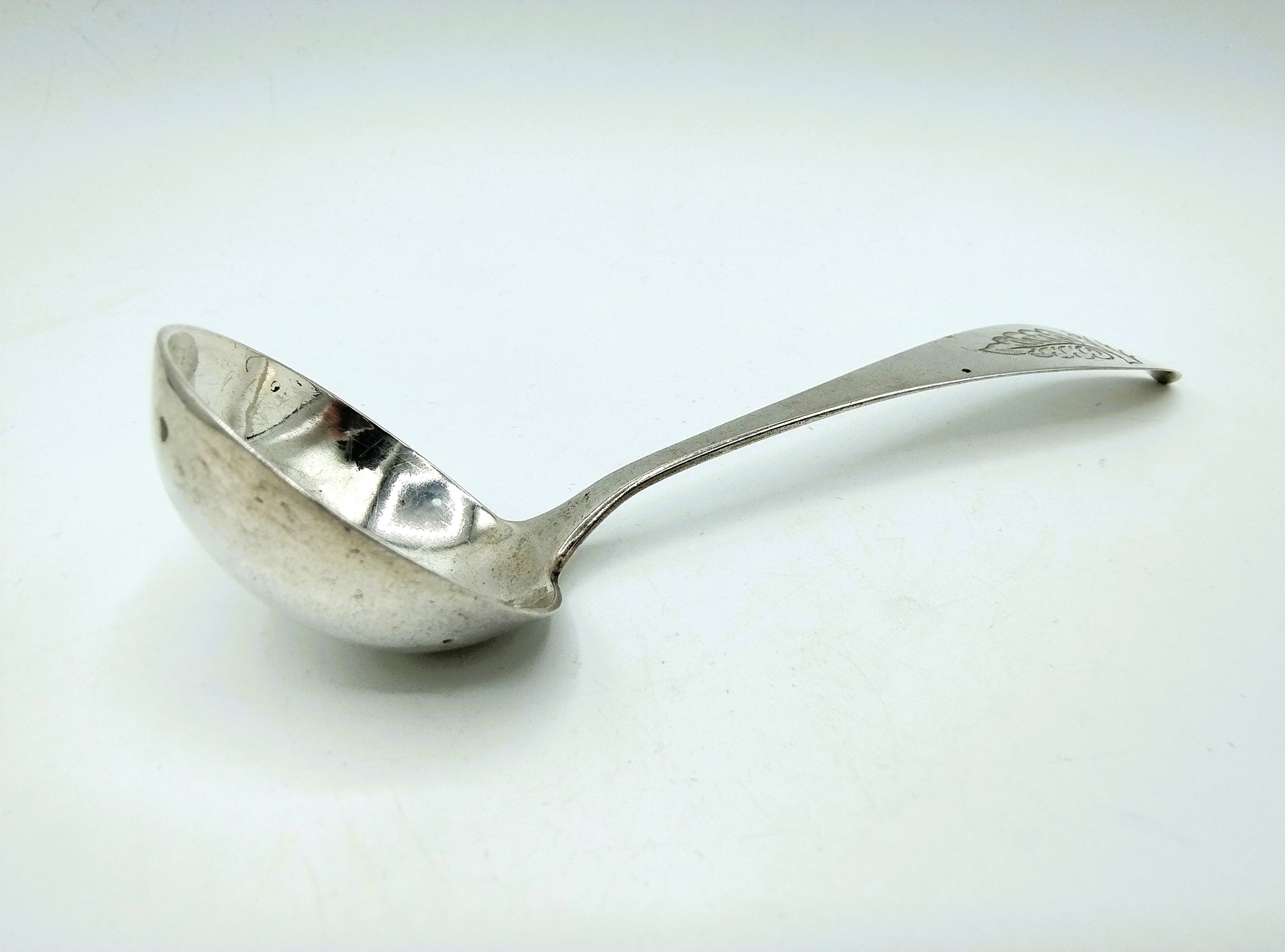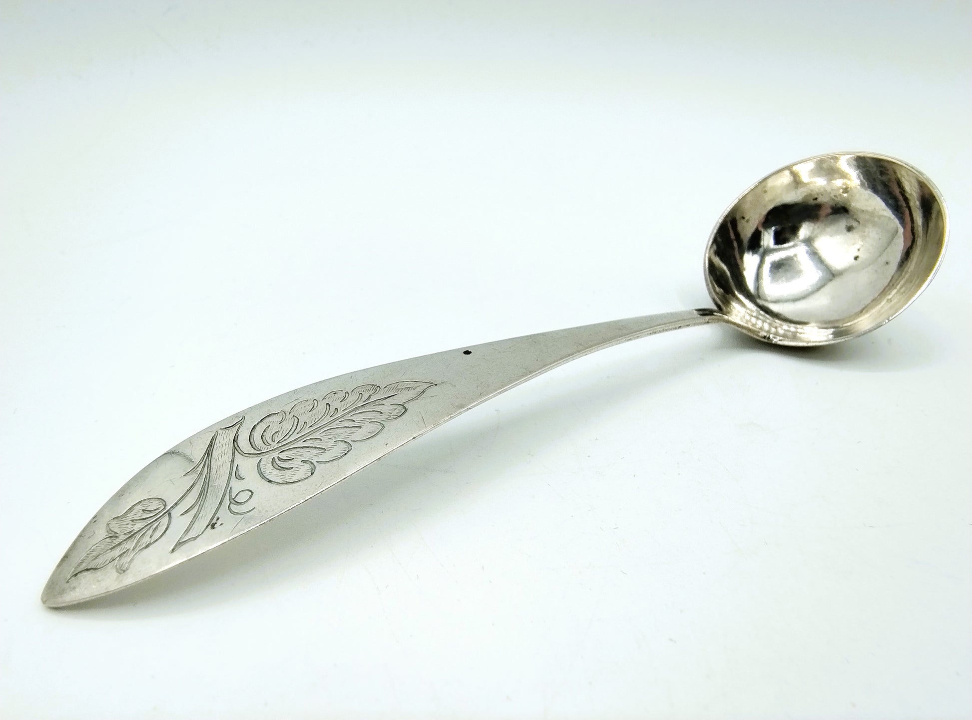 Silberner Sahnelöffel, Vierfuß / Leder, 19. Jahrhundert