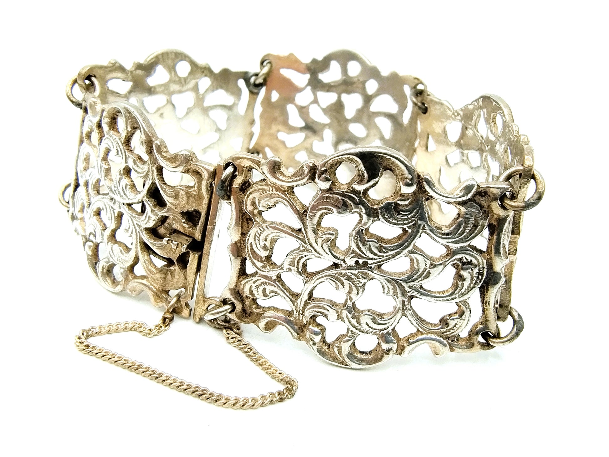 Silbernes Gliederarmband mit Schnörkelmotiven, 835
