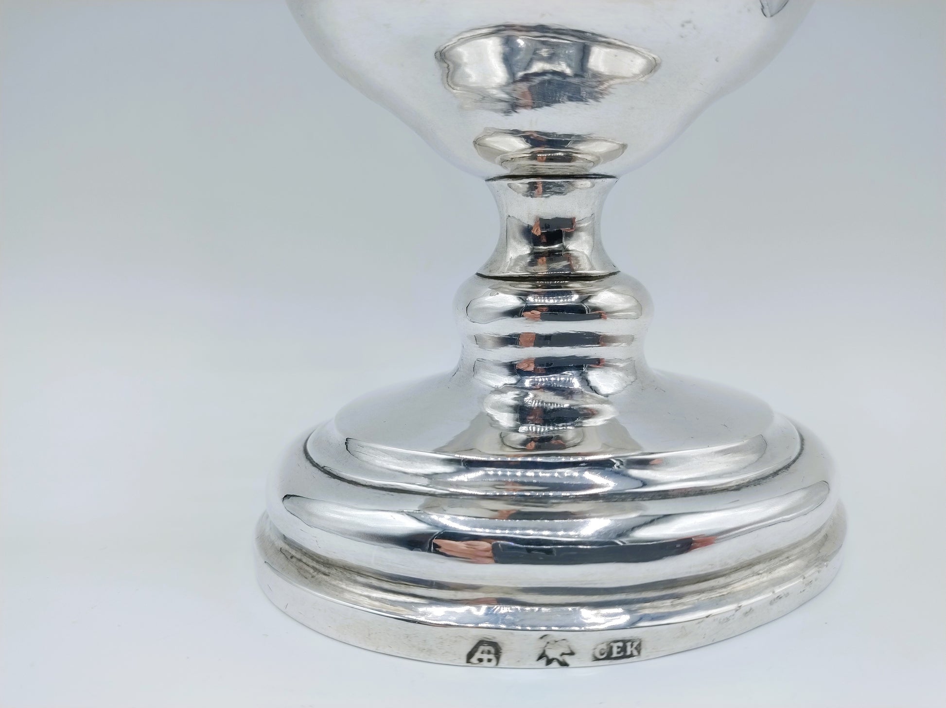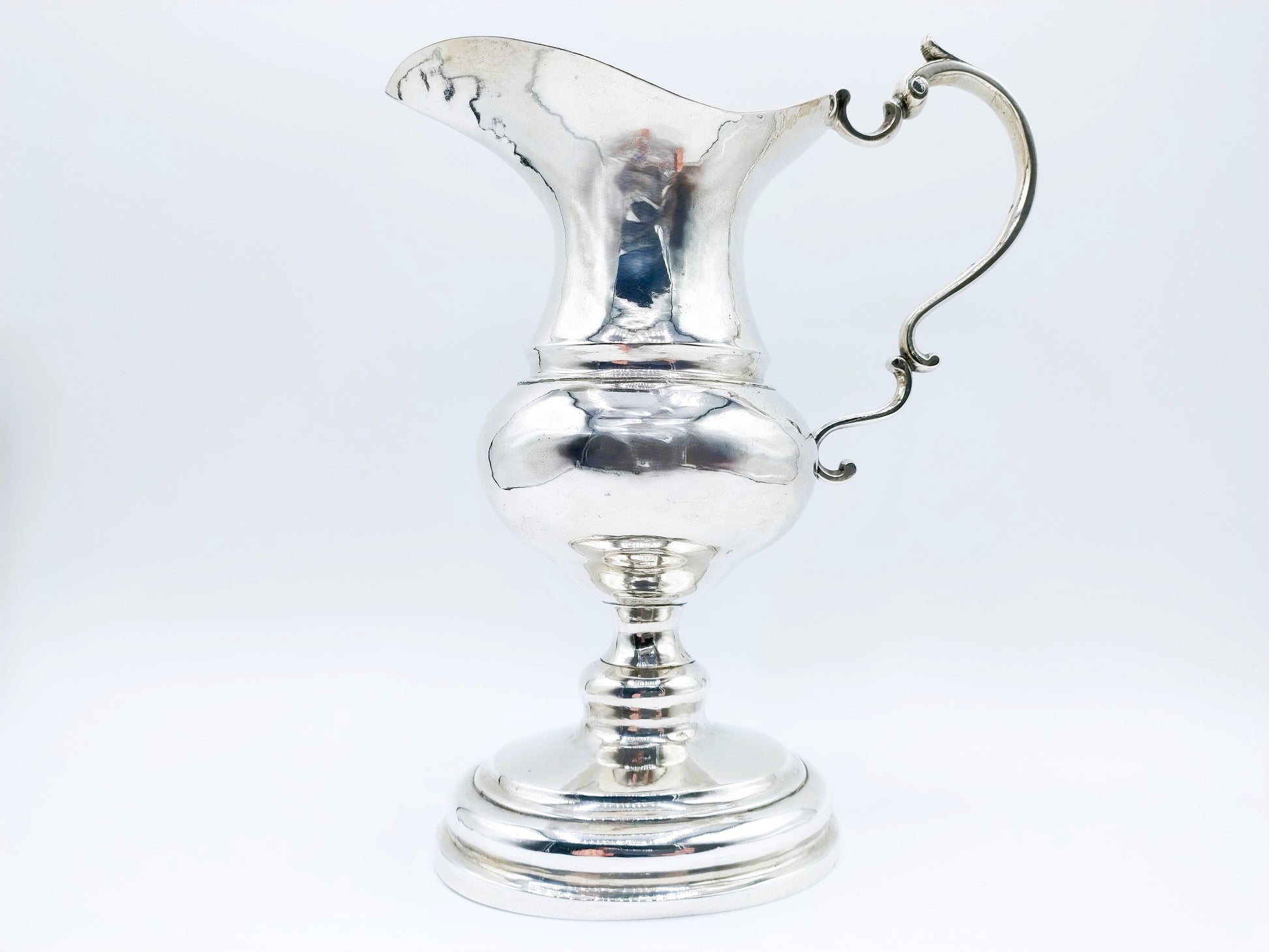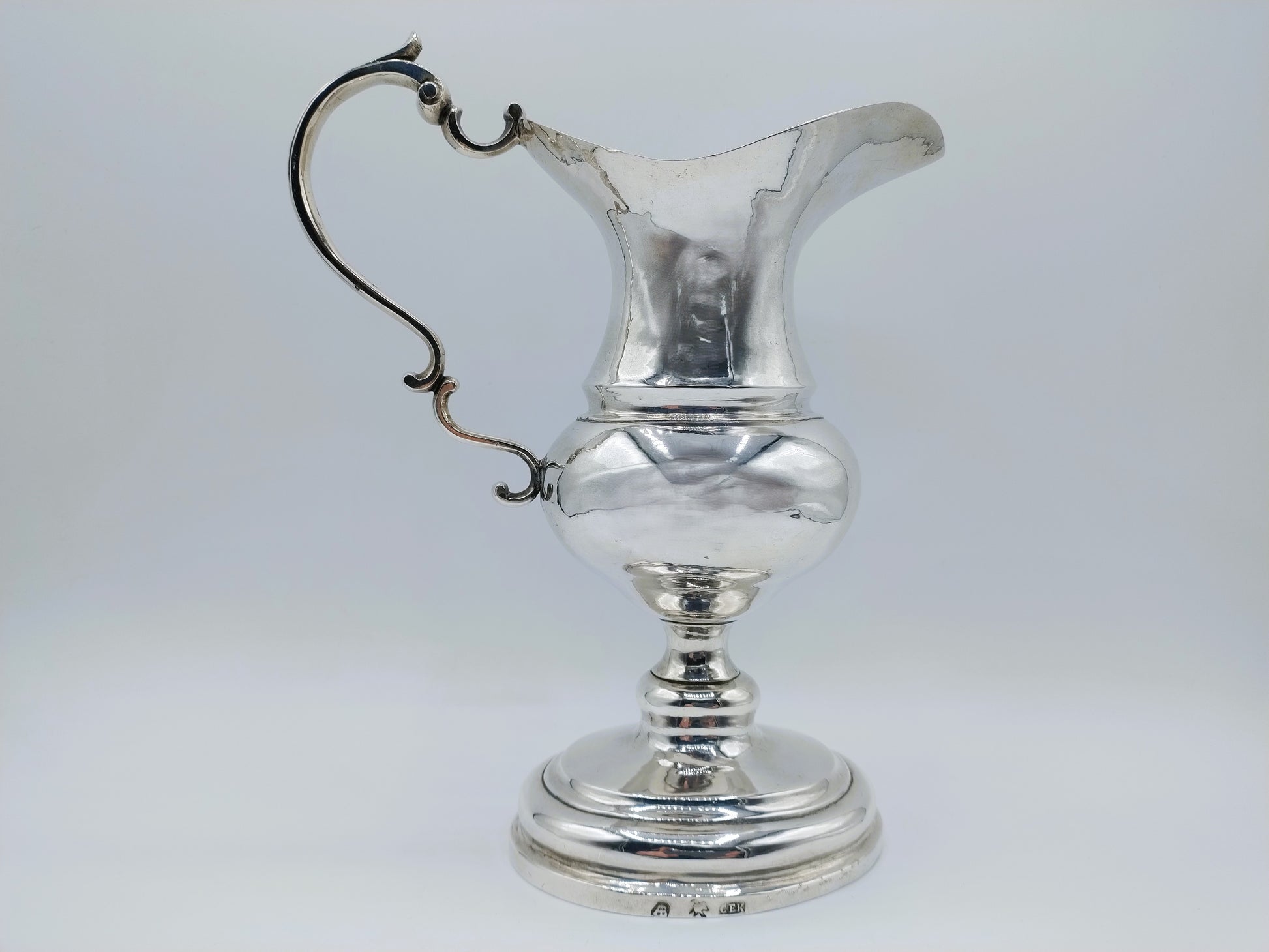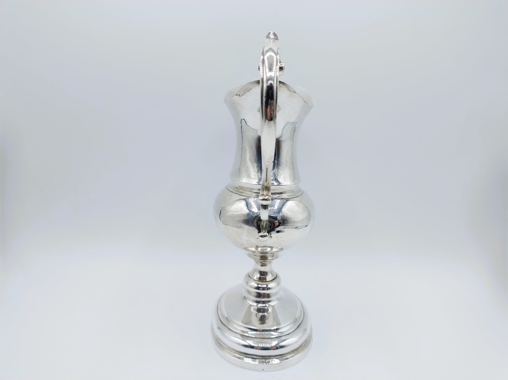 Silberne Henkelkanne hergestellt vom Silberschmied Carl Ernst Kropp aus der Stadt Arensburg bzw. Kuressaare auf der Insel Saaremaa in Estland. Dieser Silberschmied war von 1775 bis 1794 aktiv.