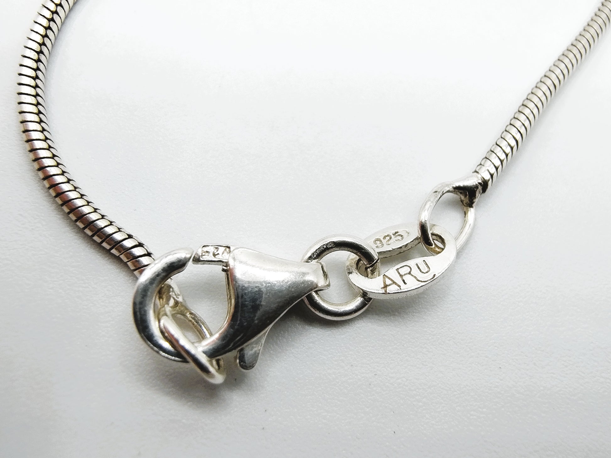 Sowohl die Kette als auch der Anhänger sind mit dem 925er-Silberstempel für Feingehaltssilber gekennzeichnet. Auch mit dem ARU-Meisterzeichen zugelassen.