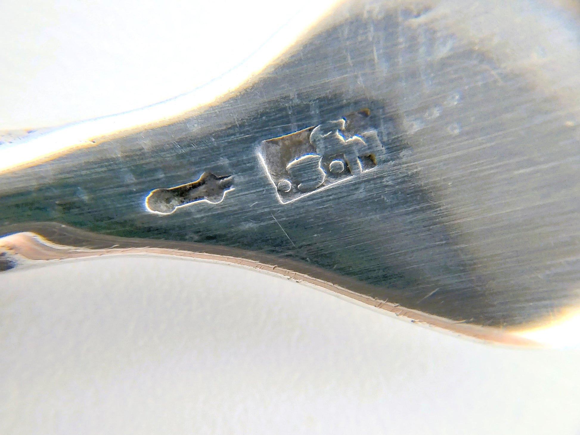 Der Löffel ist mit der Meistermarke IJS 3 und der zweiten Inhaltsmarke gekennzeichnet.