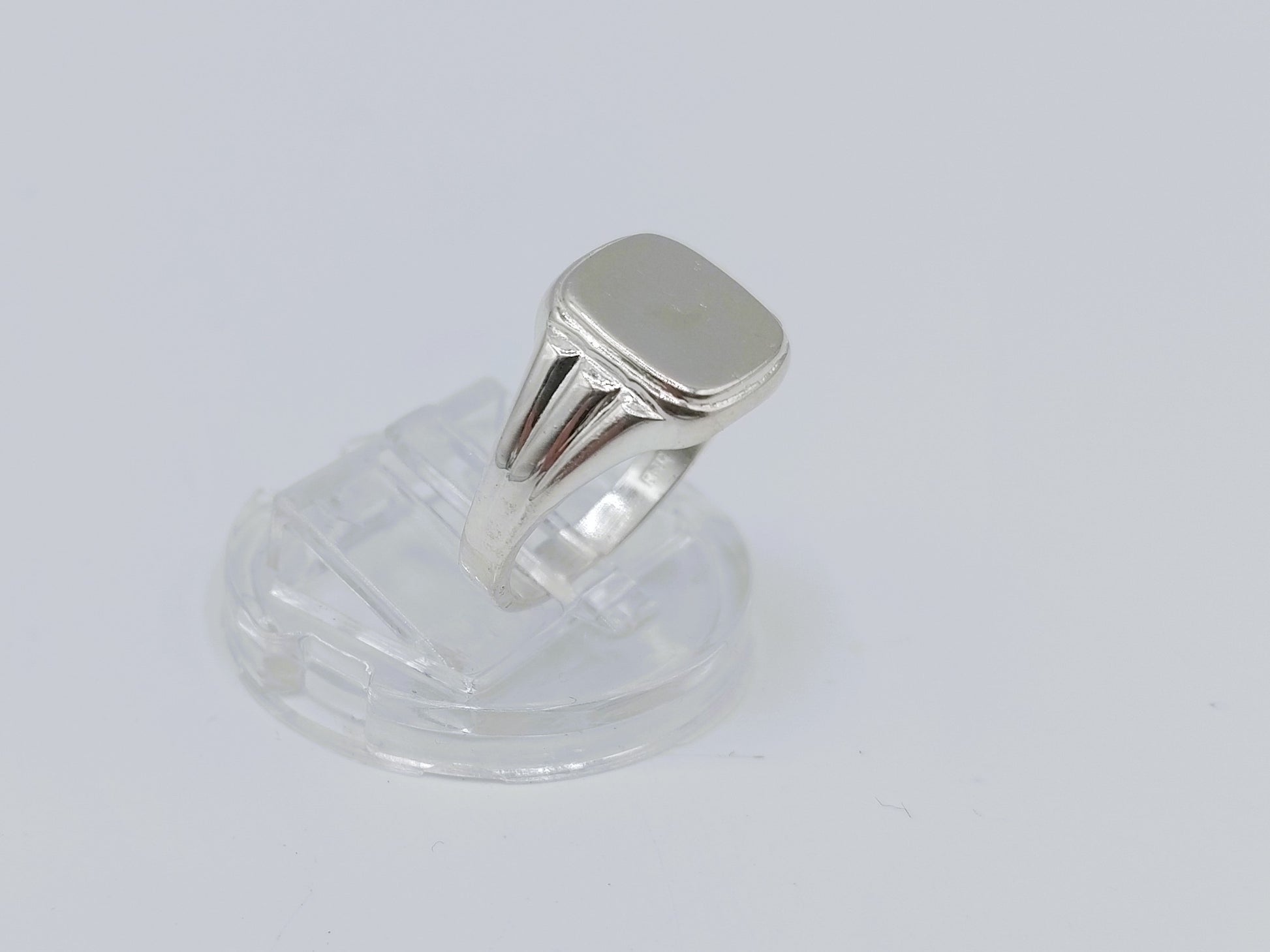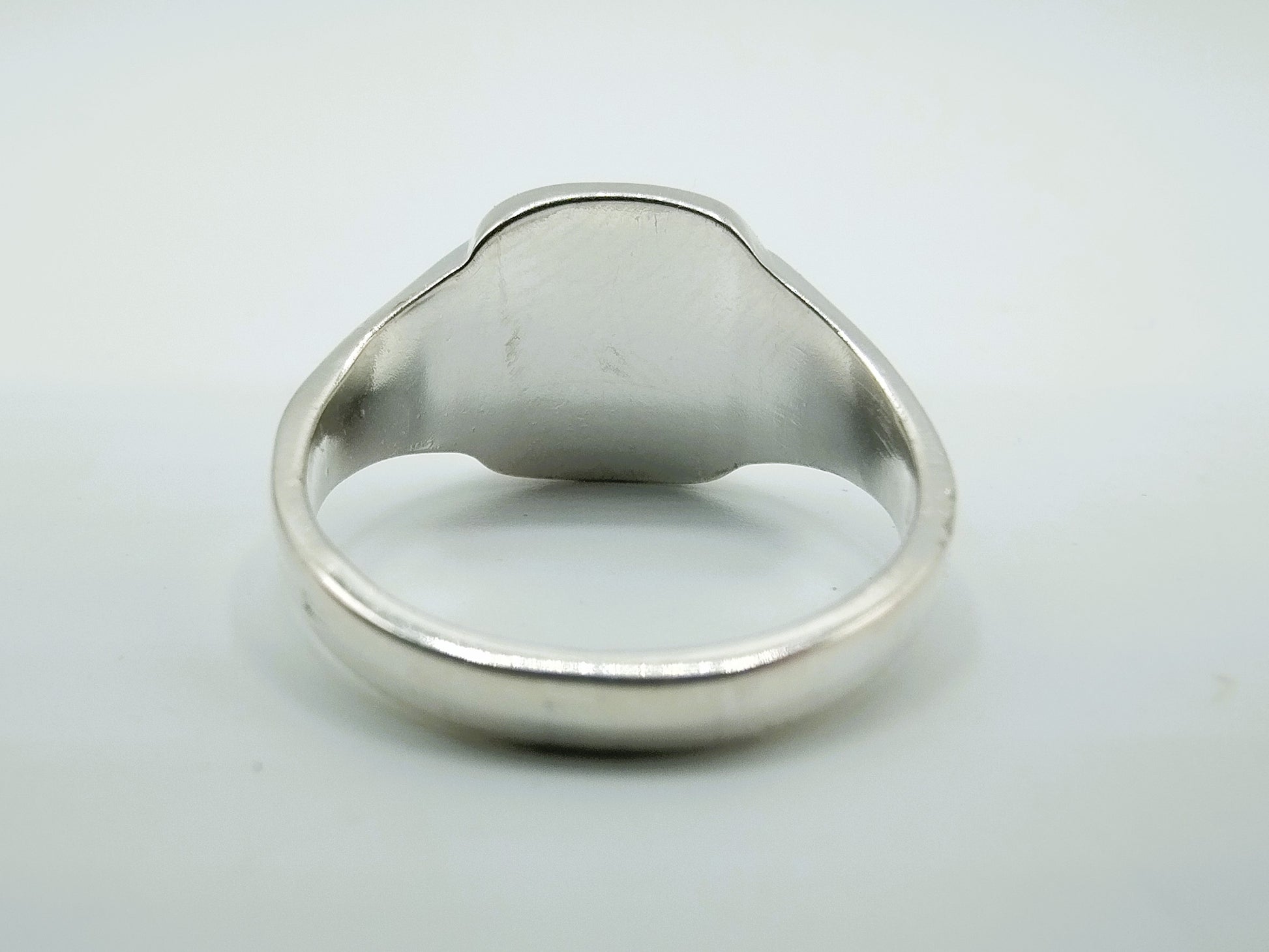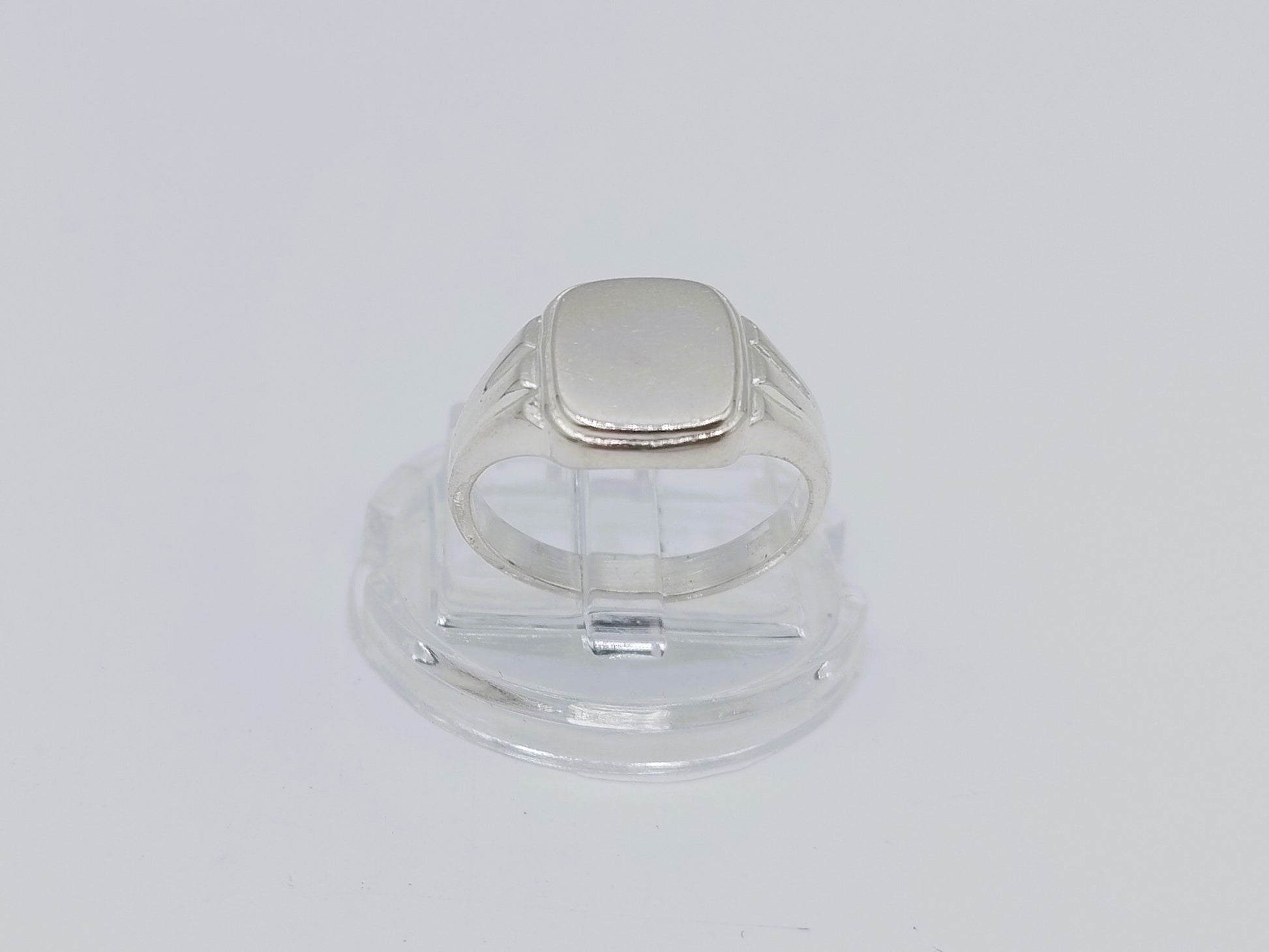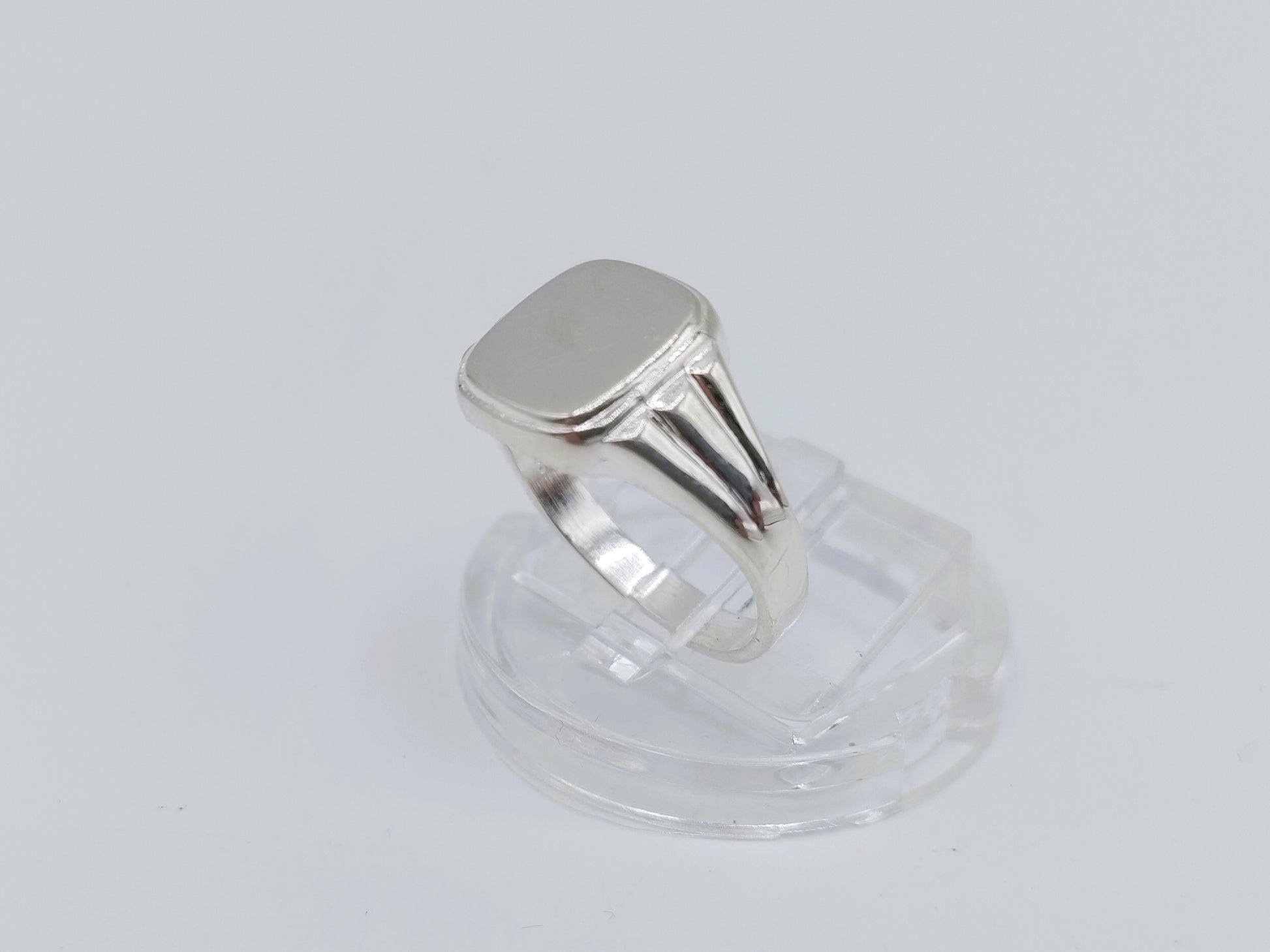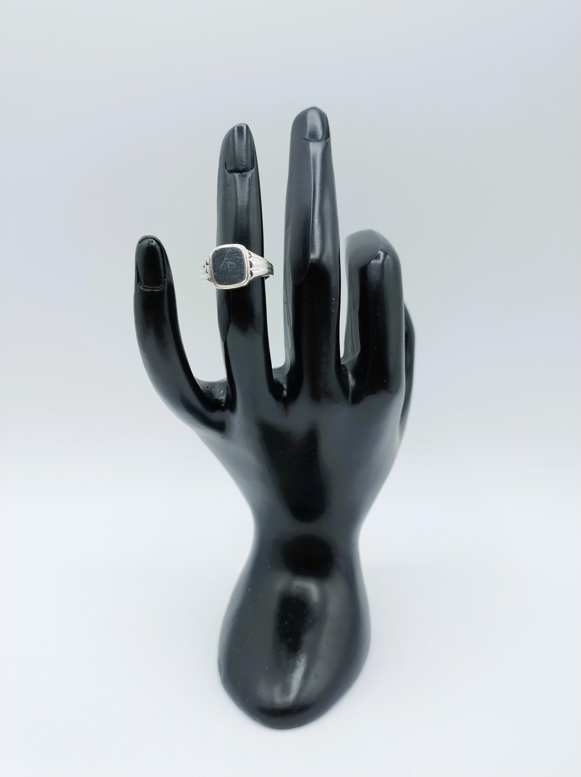 Silberner Siegelring mit glattem Kopf mit den Abmessungen: 9 x 9 mm.
