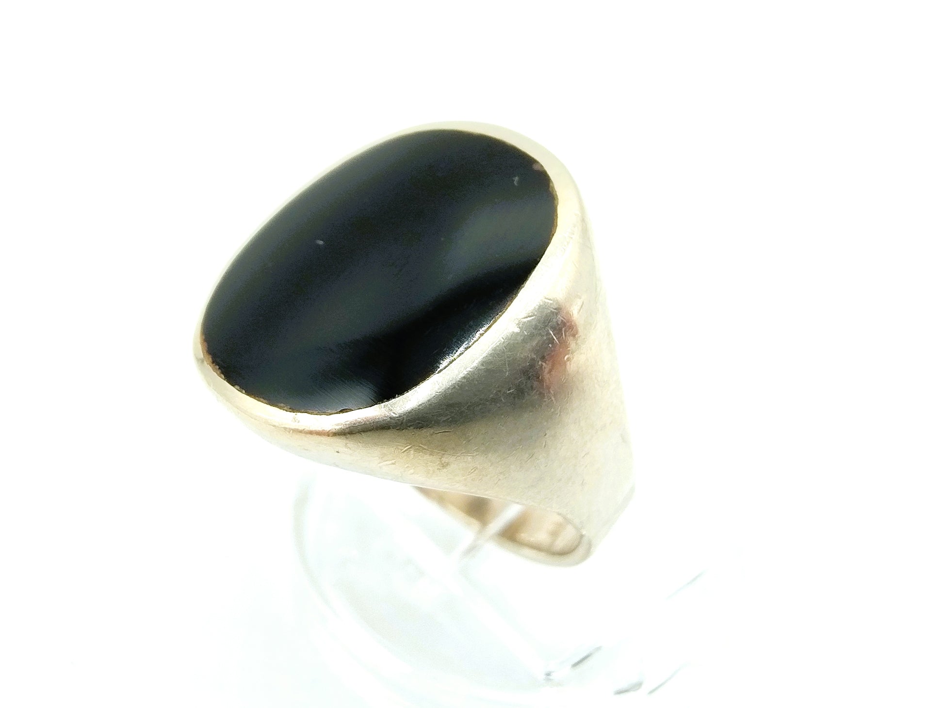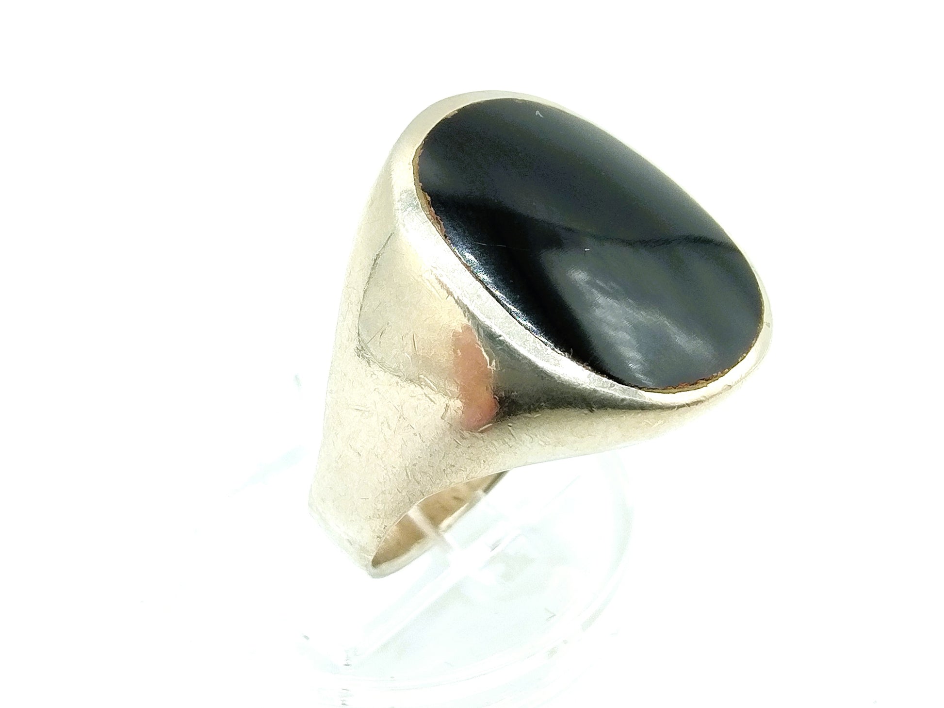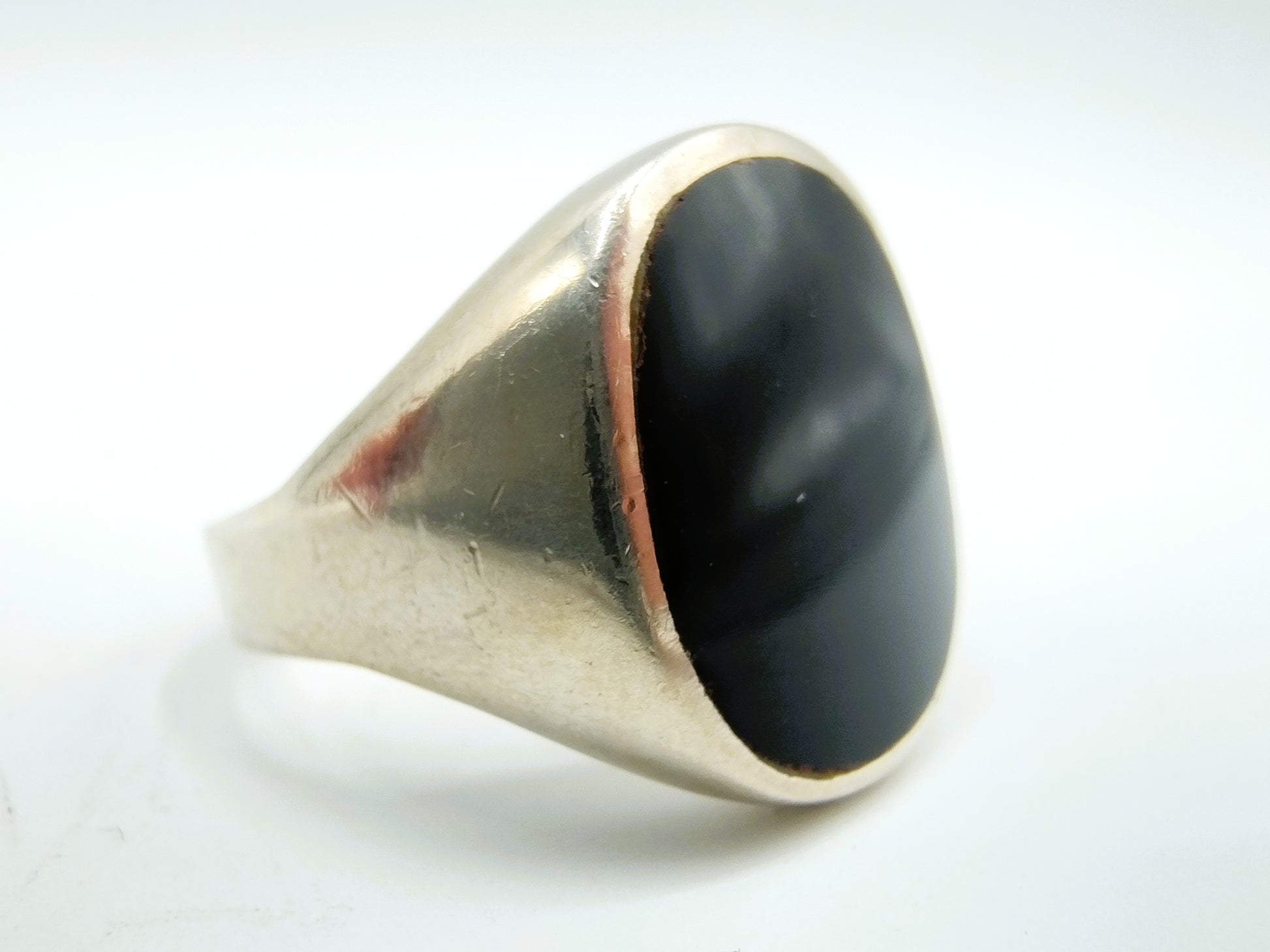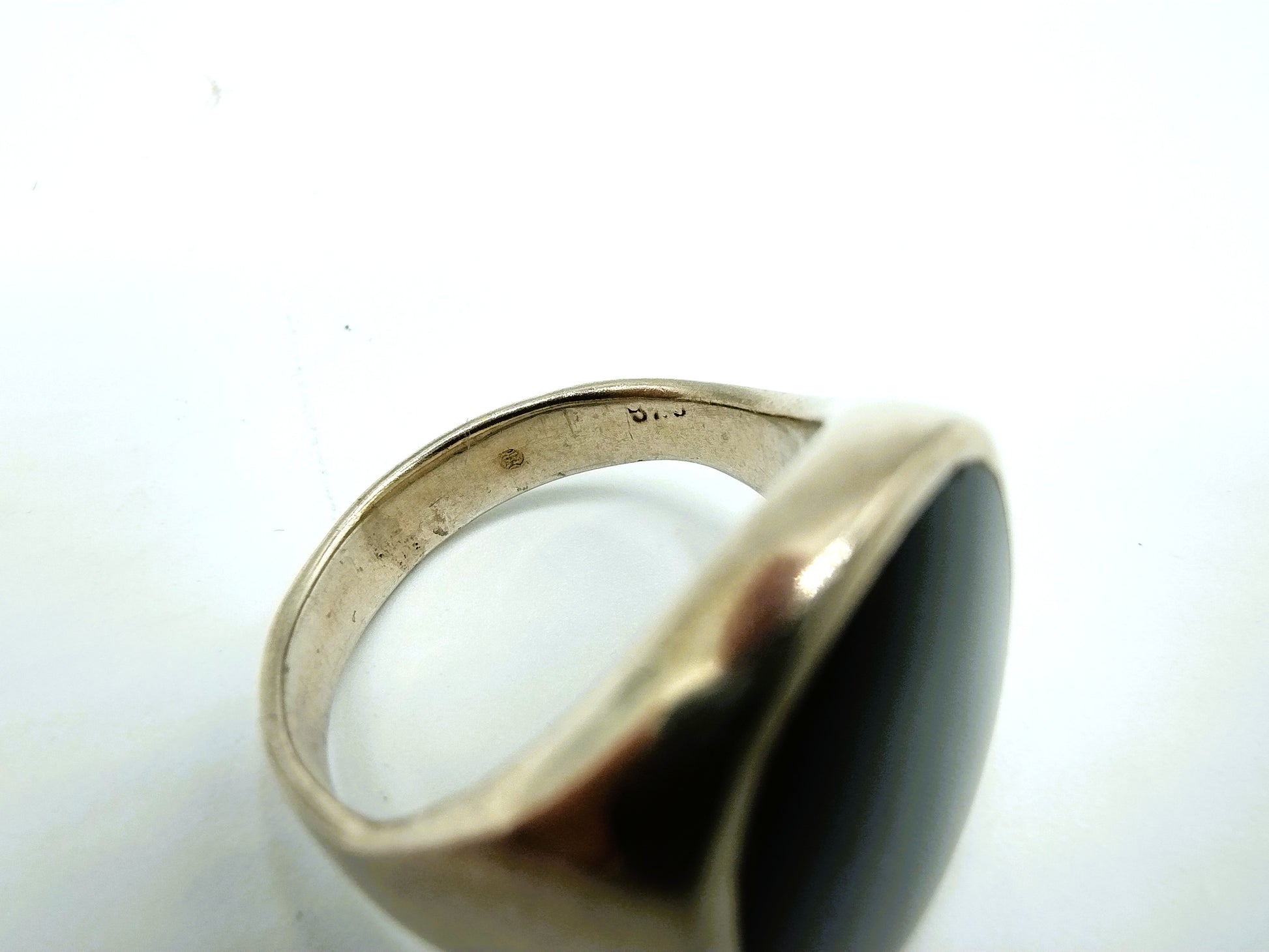 Silberner Herren-Siegelring mit einem Onyx von 1,3 x 1,5 cm.
