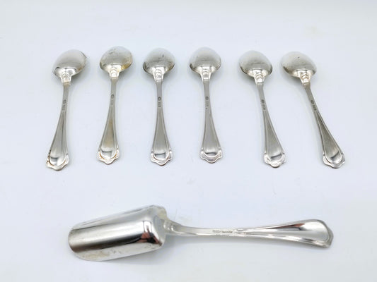 6 Silver teaspoons, and a sugar spoon, Greggio / Tencarola, 20th century