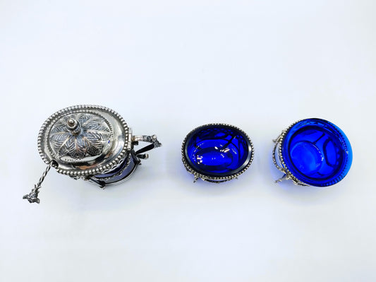 4-piece silver empire table set with blue glass, Netherlands, 19th century