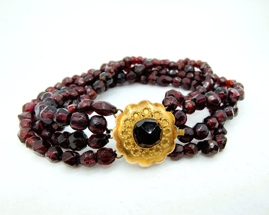 (Glass) garnet bracelet with gold clasp, 20th century