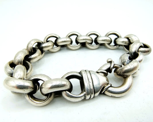 Silver coarse jasseron bracelet with large clasp, 925