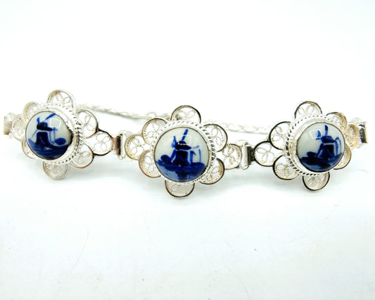 Silver bracelet, Delft blue, 835