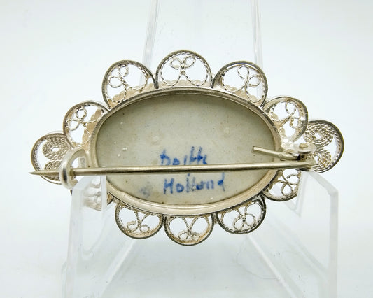 Silver brooch, Delft blue, 835