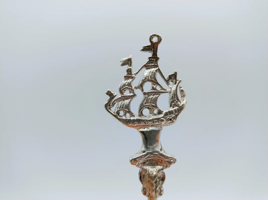 Silver birth spoon, three-master, A.B. Looxma, Sneek, c. 1730