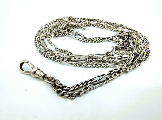 Silver pocket watch on silver watch chain with keys, 19th century.