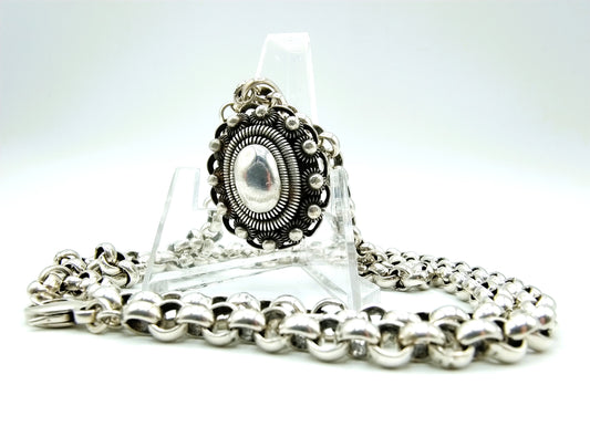 Silver necklace with silver filigree pendant, 800
