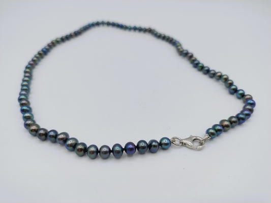 Pearl necklace with black pearls and silver clasp, 45.5 cm