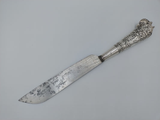 Large silver knife handle, pseudo hallmarks, 19th century.