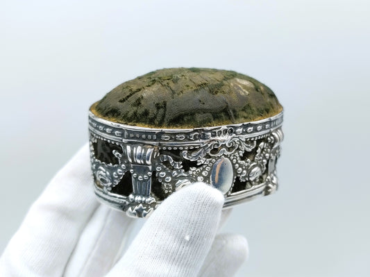 Silver-mounted pincushion, W. Comyns, London, 1880