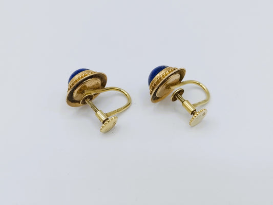 Gold screw earrings with lapis lazuli, 3.3 grams.