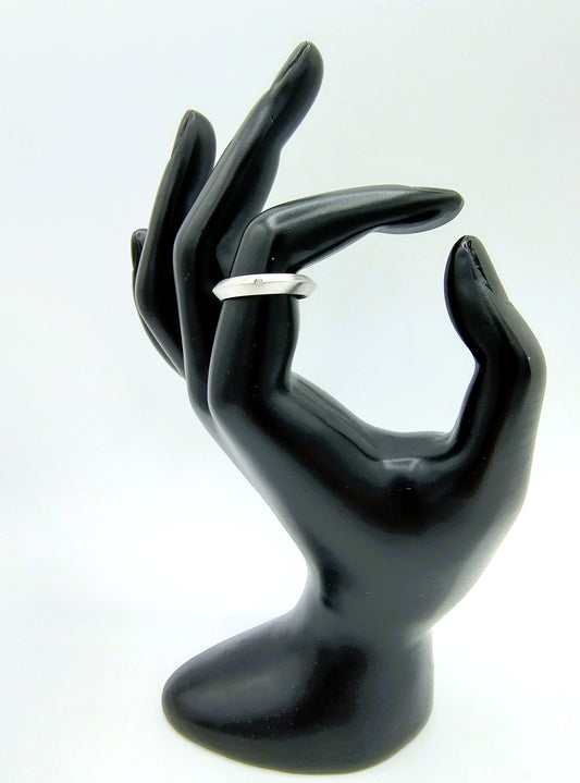 Matte / smooth silver ring with diamond, 17.5 mm