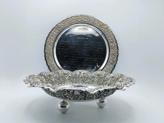 Silver fruit bowl and plate, Ambassador JB Gorkom, Indonesia, 1.1 kg